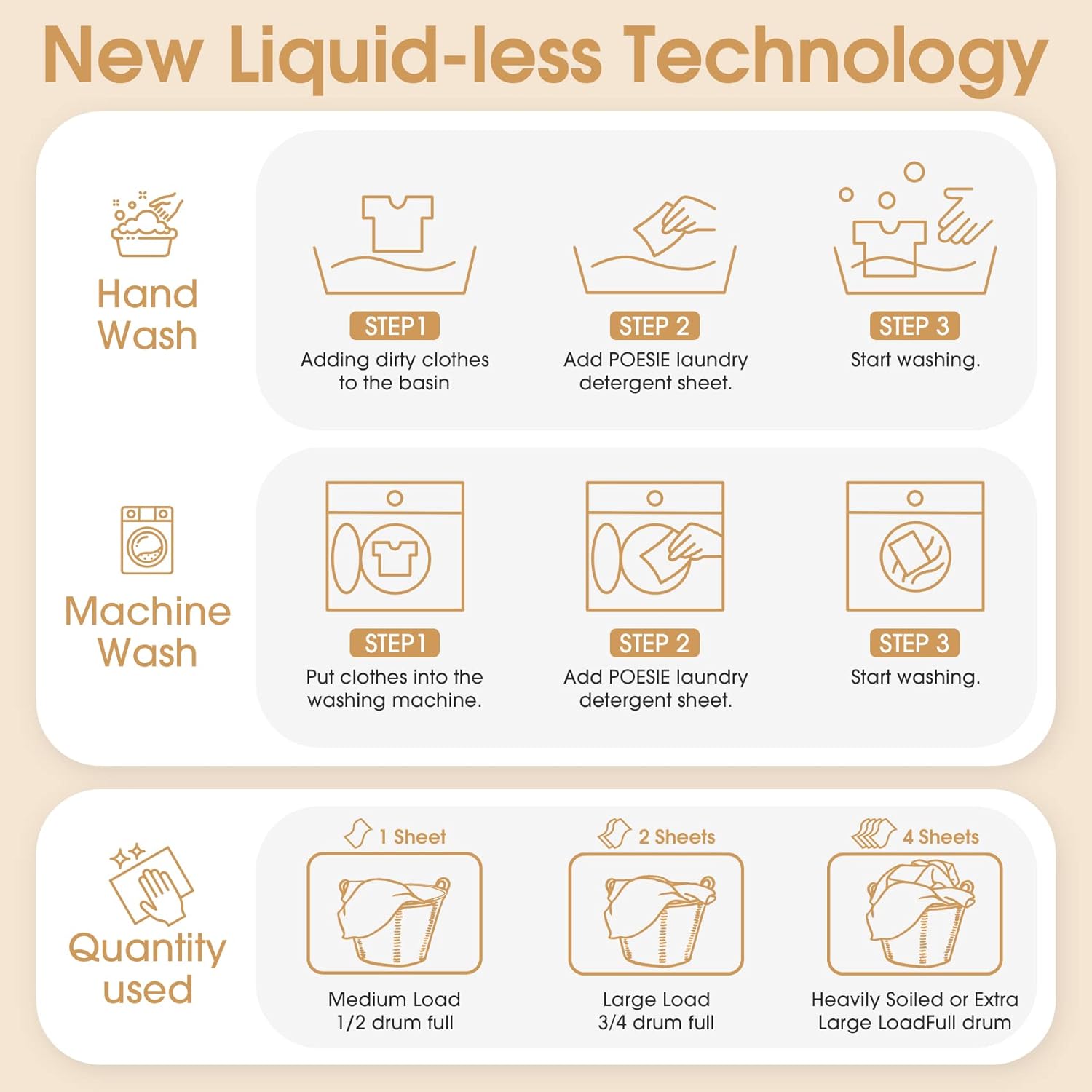 • Effortless Cleaning - Our liquidless detergent sheets are designed to make laundry day a breeze. No more measuring or pouring, just toss in the sheet and let it do the work. Bringing you the perfect laundry experience