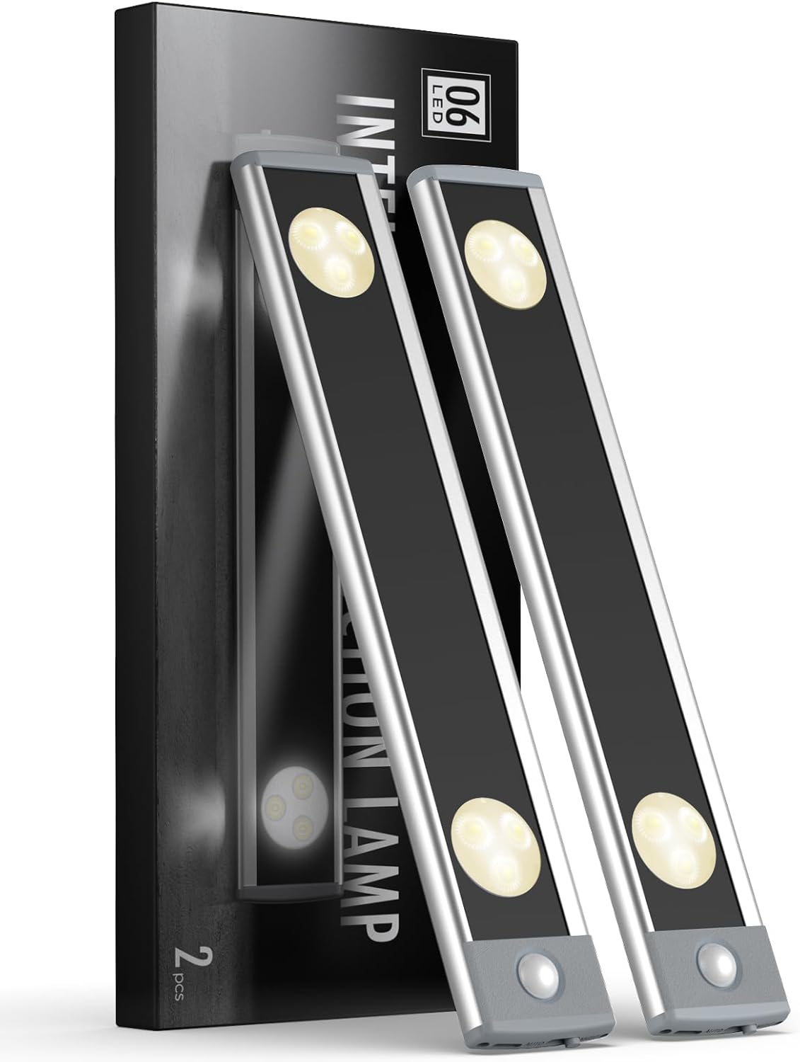 Under Cabinet Lights, Wireless Motion Sensor Light Indoor,10in LED Warm Lighting Rechargeable Battery Operated,4 Modes Night Light, Stick-On Magnetic Closet Lights for Kitchen, Hallway(2 Pack)