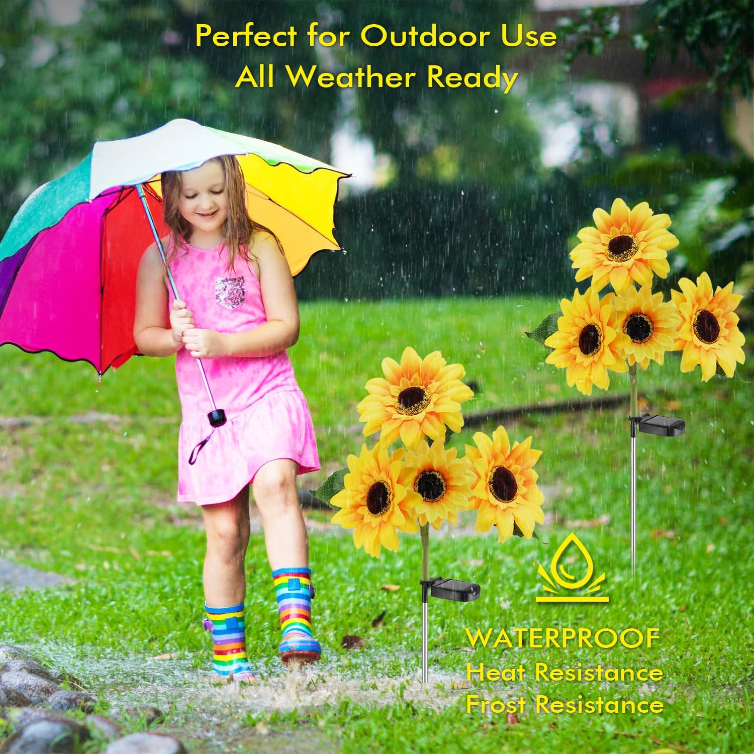 - 【Upgraded Solar Sunflower Lights】The Petals, Leaf, Buds are Exquisitely Designed to Imitate Real Flower.We also upgraded a wider solar panel which converts sunlight into power faster and more efficient in cloudy weather.