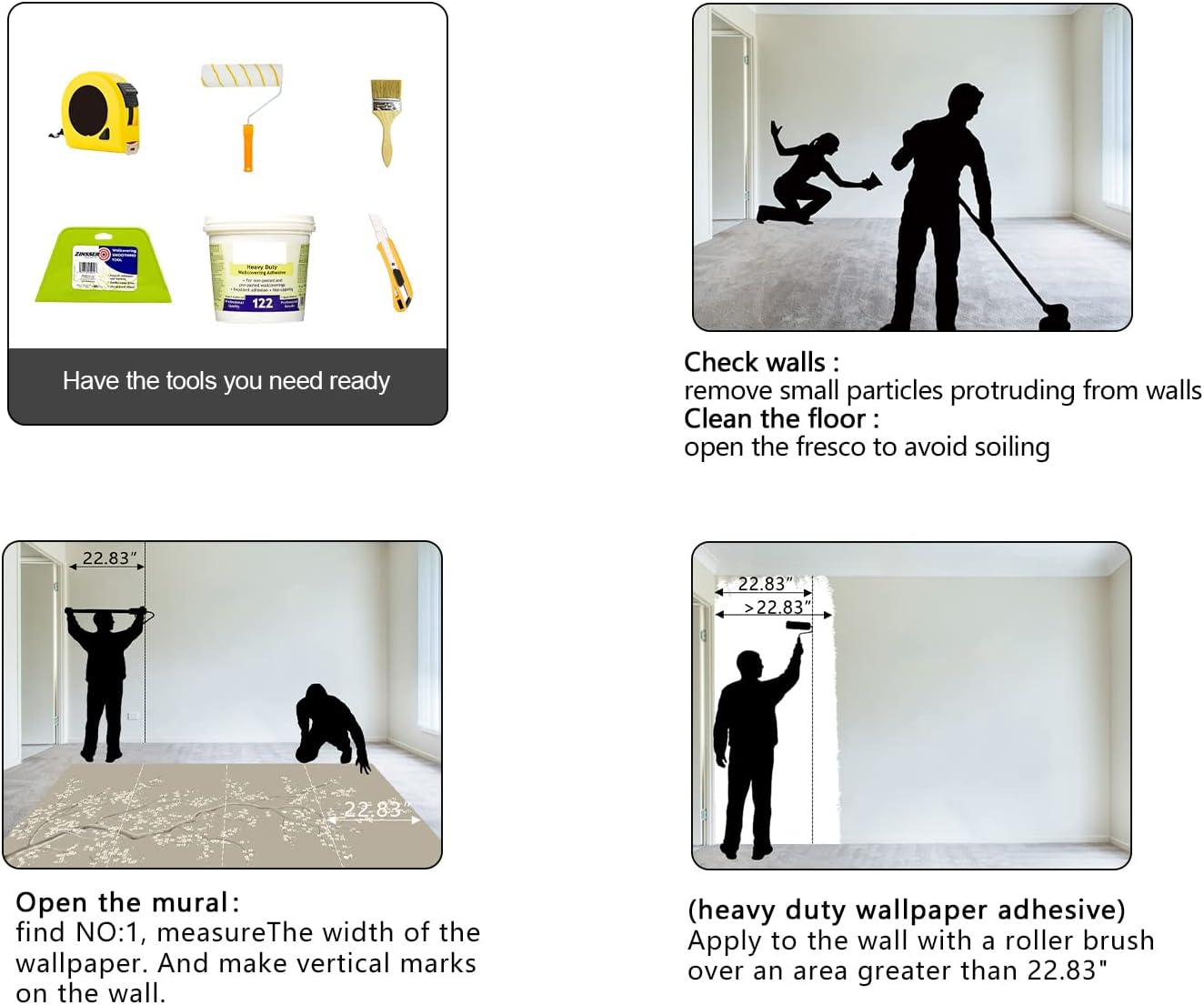 - This mural is It's not Peel and Stick . Additional Purchase required ( thick wallpaper adhesive ) please Check if is the product you need . thanks.