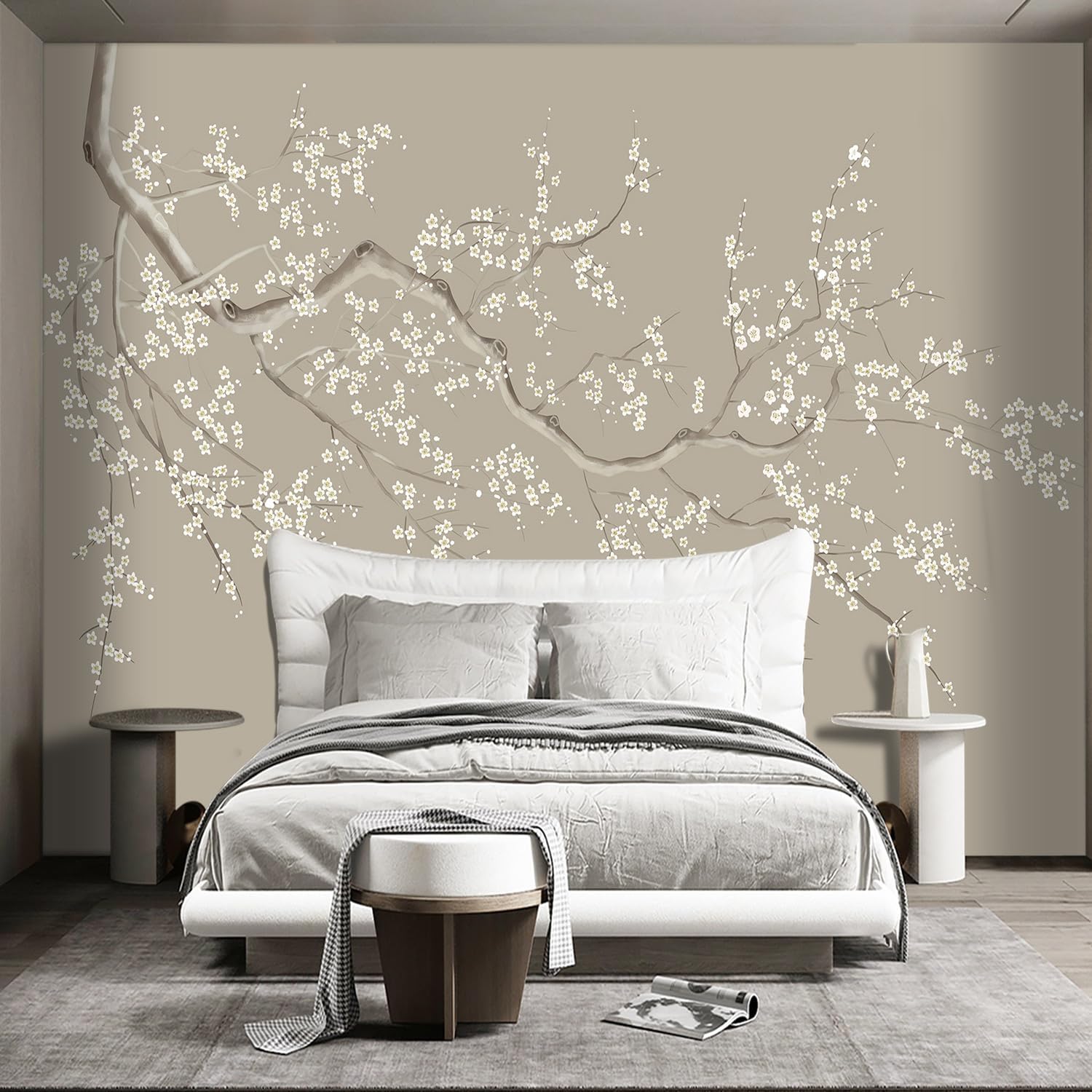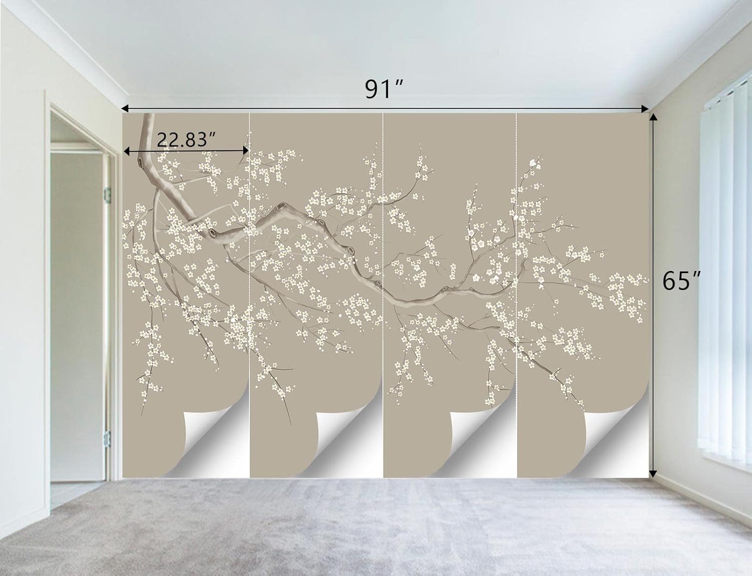 Chinese Style Plum Flower wallpeper Living Room Bedroom Office Wall Mural - W91 xH65(Not Peel and Stick)