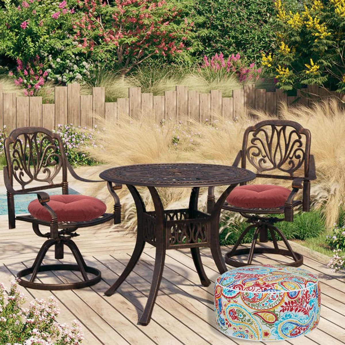 FUNHOME Inflatable Outdoor Ottoman with Air Pump,20"x9" Portable Patio Pouf,Water Resistant,Fade-Resistant,Round Blow Up Footrest Stools for Home Garden Camping Travel(Phoenix)