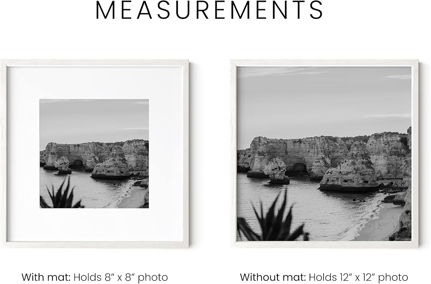 - PHOTO GALLERY WALL FRAME SET: Our 12x12 frame set is meticulously constructed using natural oak wood, known for its timelessness and durability. The slim profile of the wooden picture frames white effortlessly blends into any interior decor, adding a contemporary touch. The clean lines and sleek design make the square frames a perfect choice for those seeking a stylish, understated display solution. A matted frame white will complement any photograph or art print
