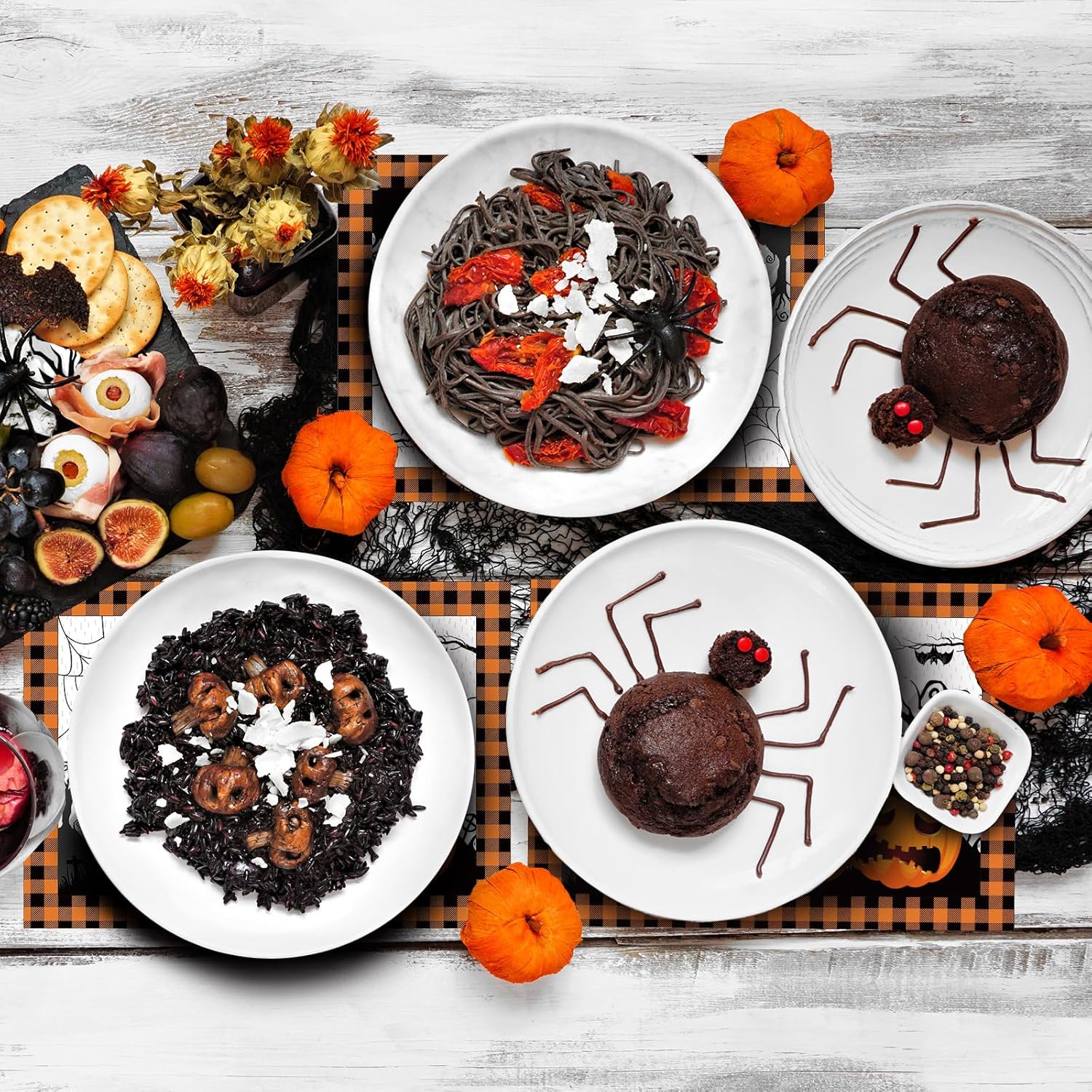 - Pumpkin Halloween Theme: designed with pumpkins, ghost, spider web and so on, the Halloween place mats feature a fun and festive design, ideal for adding some Halloween spirit to your dining table, the black and orange color scheme and spooky graphics create a lively atmosphere that is sure to delight adults
