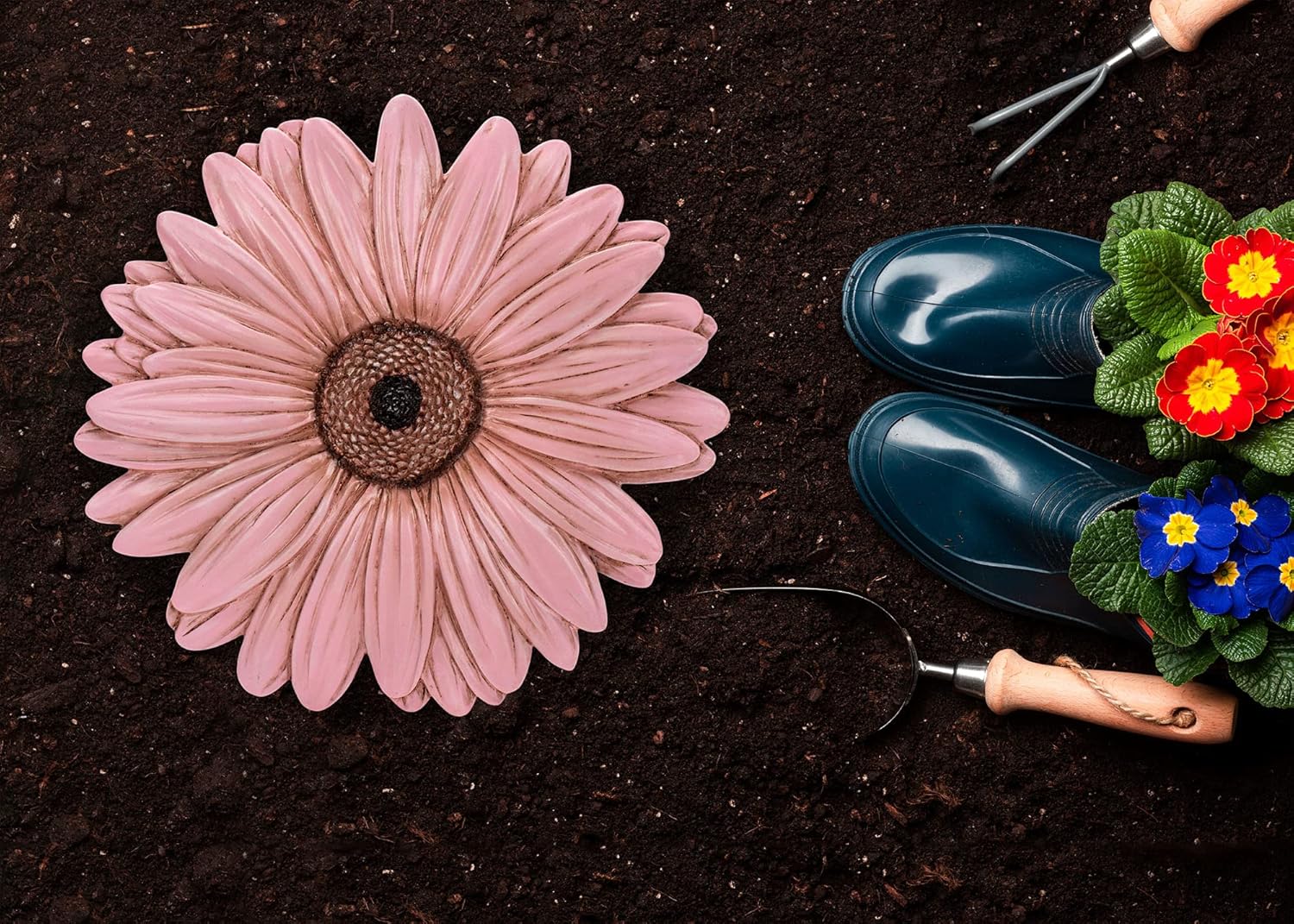 - FLORAL NATURE INSPIRED DESIGN โ Brighten up your indoor and outdoor spaces with this beautiful gerbera daisy blossom, shaped stepping stone. Dimensional design will add interest to your dรฉcor and express a playful personality.