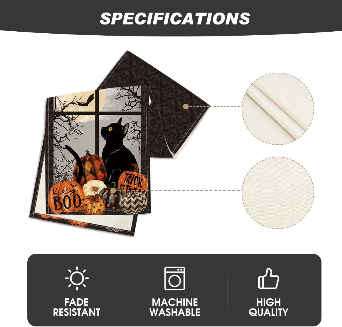 Artoid Mode Boo Black Cat Pumpkins Halloween Table Runner, Trick Or Treat Kitchen Dining Table Decoration for Home Party Decor 13 x 72 Inch