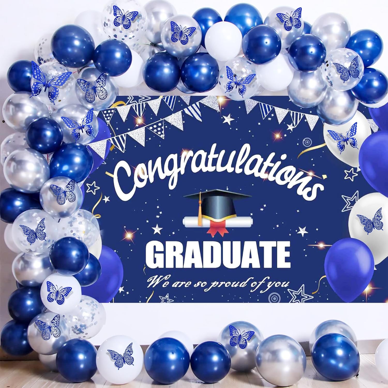 SAOROPEB Butterfly Wall Stickers, 48 Pcs 4 Styles 3 Sizes, Metallic Paper, Removable, Navy Blue, Art Deco Decor for Wall