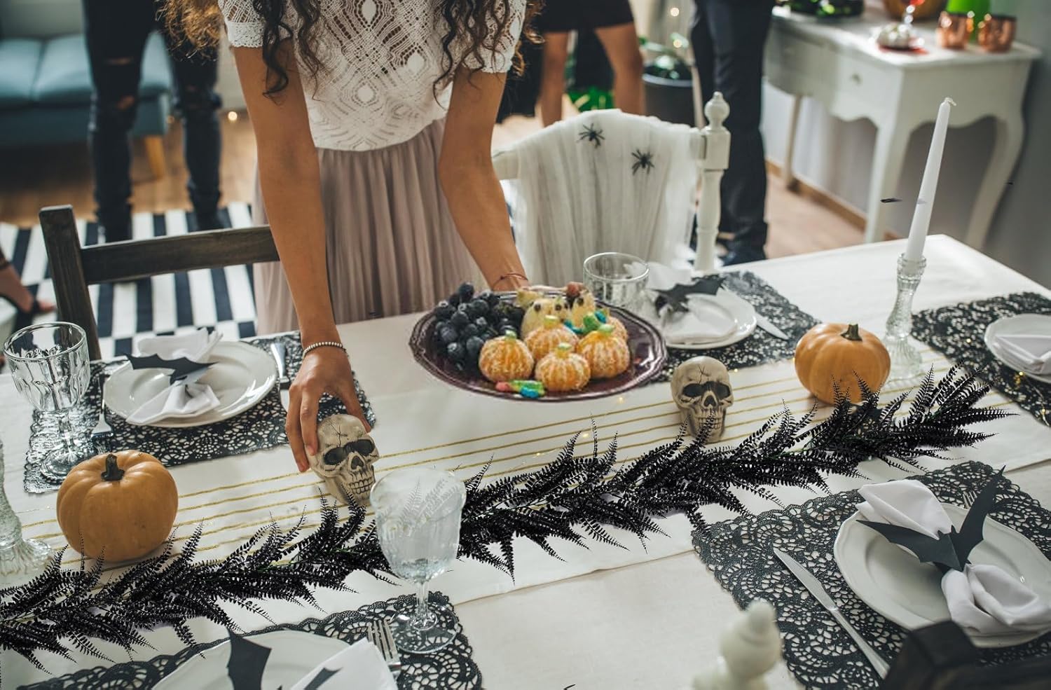 - 【Halloween Garland】Artificial plants do not require manual pruning and care, as they do not wilt, fade, or easily damage, saving you time and energy. You can bend it and shape it into any decoration you want. These realistic black garland add a festive atmosphere to your Halloween