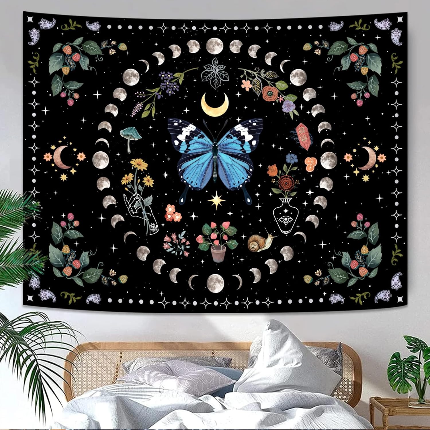 - 🎄【Practicality】: This tapestry is incredibly versatile. Whether you are reading, practicing yoga, or simply relaxing, the tapestry creates a serene and inspiring atmosphere that complements the mood perfectly. It truly enhances the overall experience of being in the space. This butterfly moon flower tapestry can be used as bedspread, beach blanket, beach scarf, picknick blanket, tablecloth, bed sheet, picnic mat, photography background, etc.