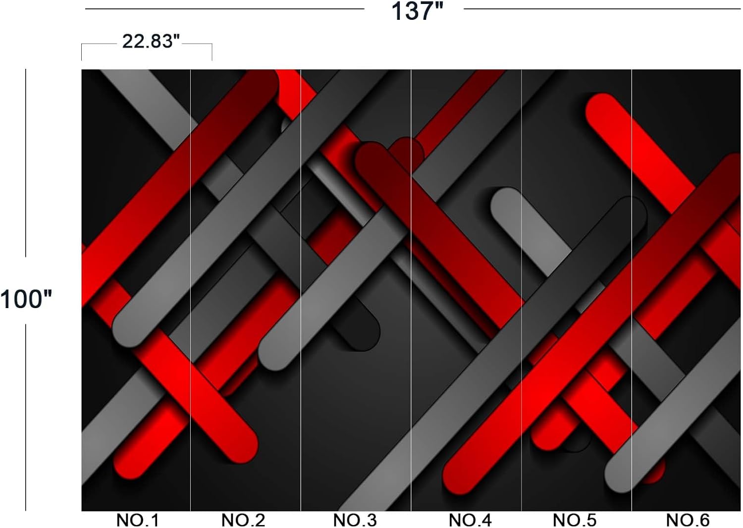 - The size of the wallpaper is 137" wide x 100" high and divided into 6 panels.