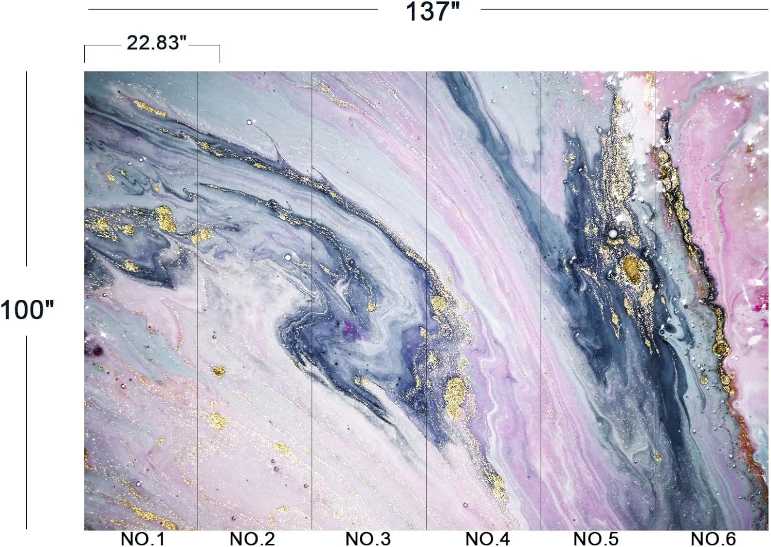 - The size of the wallpaper is 137" wide x 100" high and divided into 6 panels.