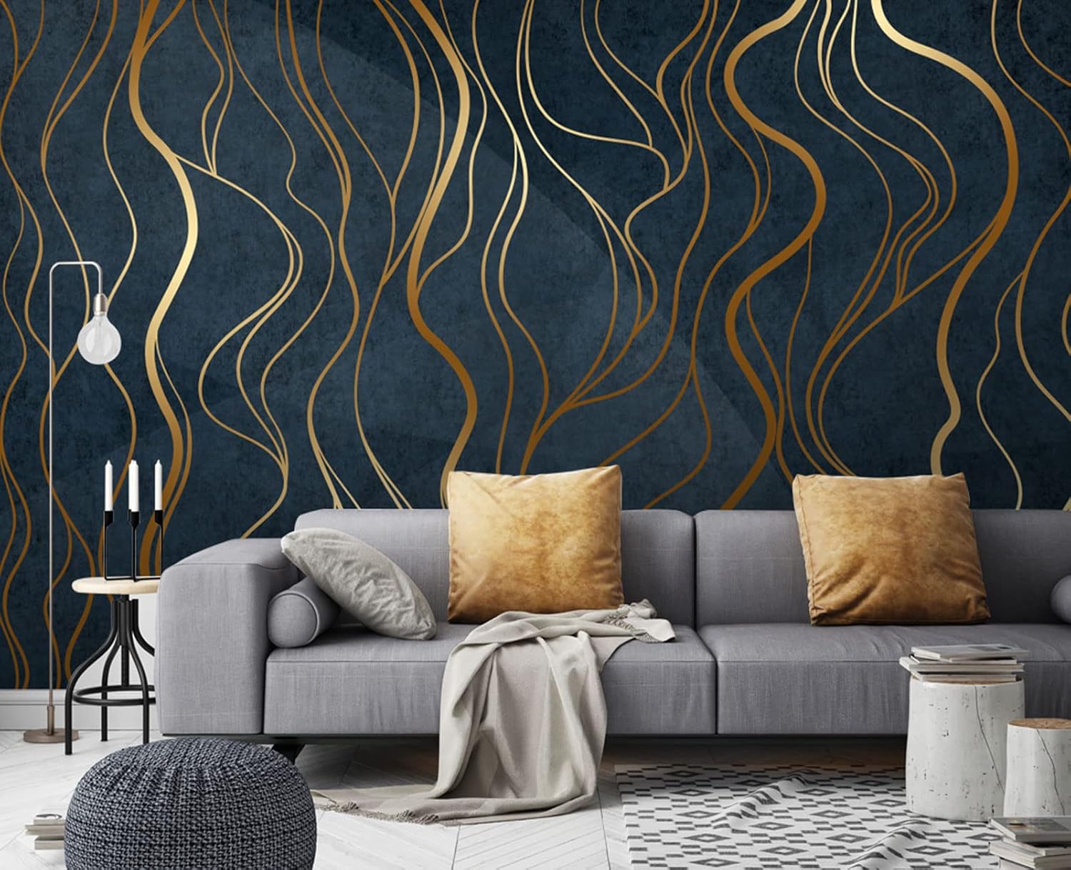 Simple Golden Lines Wall Mural Wallpaper for Bedroom 137" x 100"