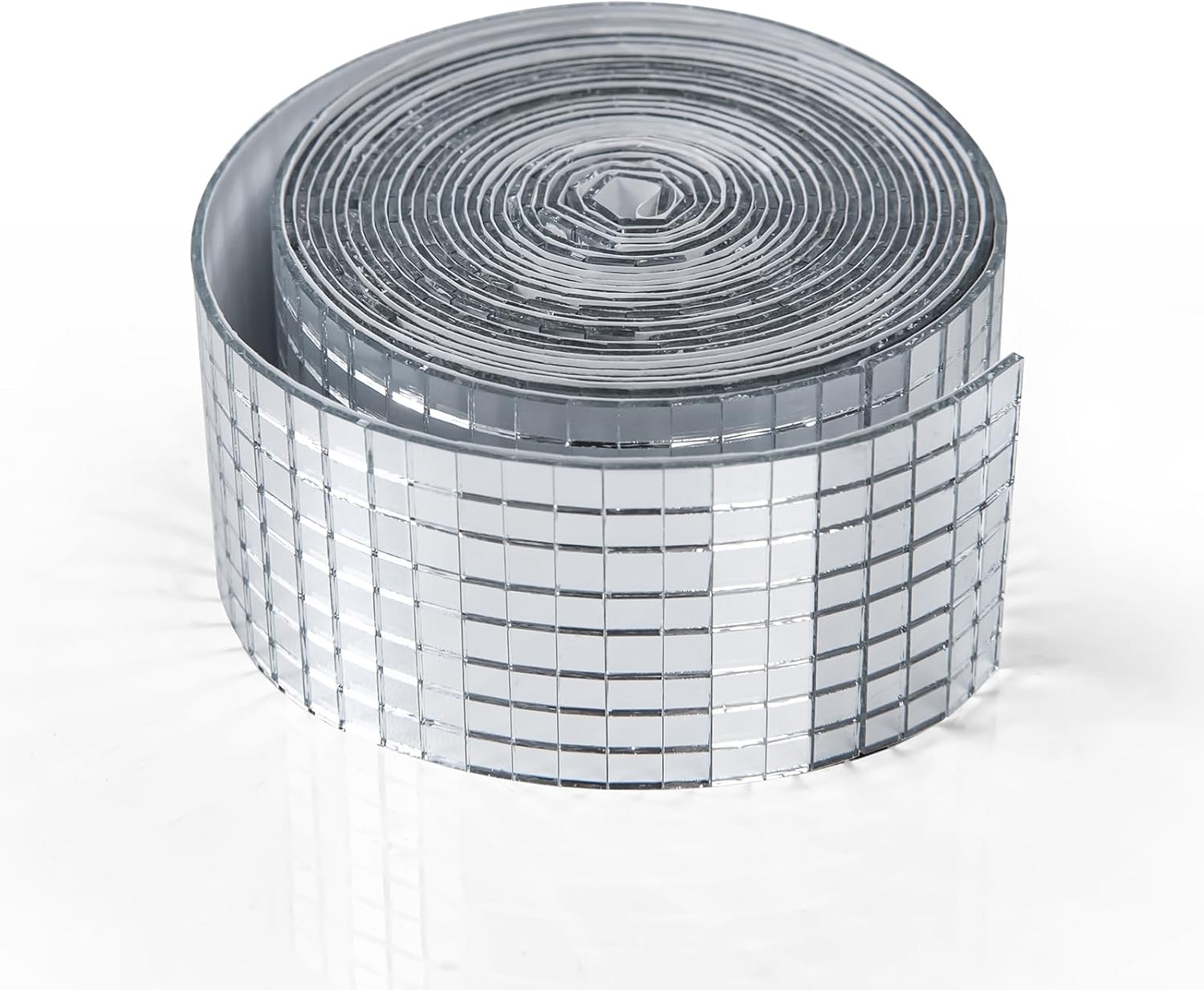 LONGKING 5664 Pieces Self-Adhesive Mirror Tiles, Square Mirror Stickers Mosaic Tiles, Glass DIY Craft Decoration, Disco Ball Tiles (Silver, A Large Roll)