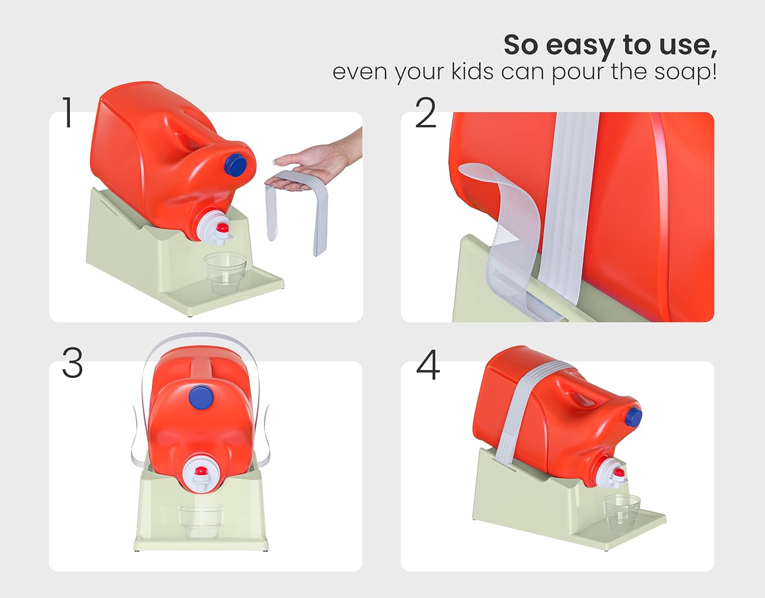 - [Effortless Soap Dispensing:] The angled design of our laundry soap organizer allows for easy soap pouring without the need to tilt or lift heavy detergent bottles, saving you time and effort during laundry.
