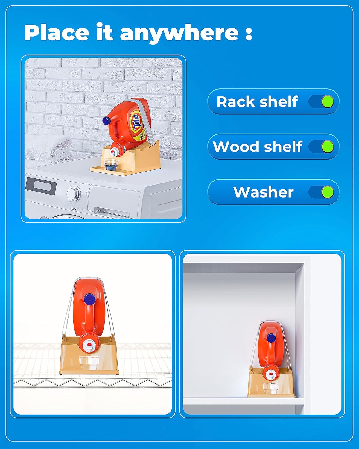 - [Effortless Soap Dispensing:] The angled design of our laundry soap organizer allows for easy soap pouring without the need to tilt or lift heavy detergent bottles, saving you time and effort during laundry.