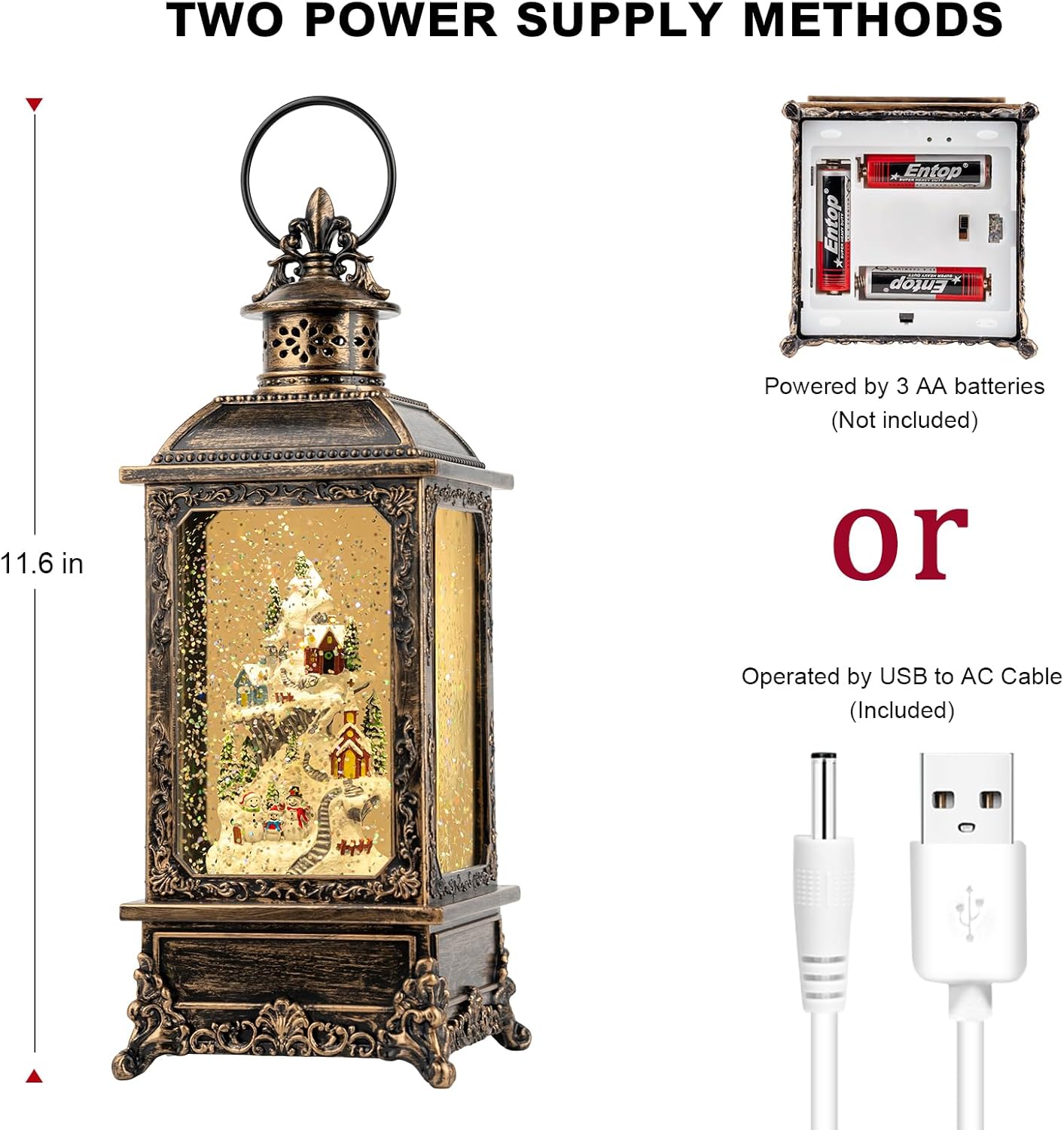 - 🎅🎄【Two Mode Power Supply】Powered by USB to DC cable (include), the snow globe lantern can be operated without batteries, which can save you a lot on batteries. & Powered by 3 AA batteries (not included), you can place it at any place that you want to add warm ambiance.