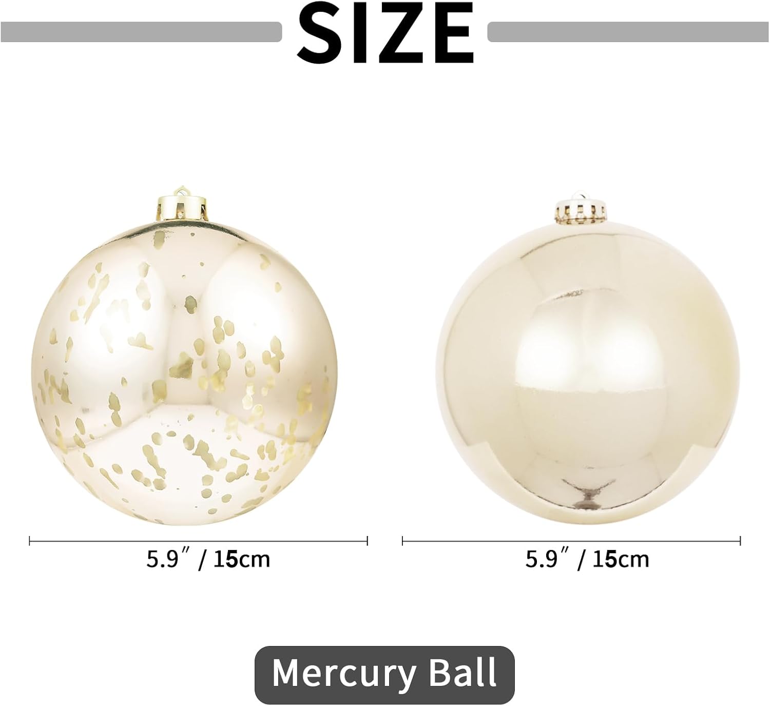 XmasExp Large Christmas Ball Ornaments,2pcs Champagne Giant Shatterproof Plastic Hanging Mercury Xmas Ball Decorations Christmas Tree Ornaments (Champagne Gold, 6")