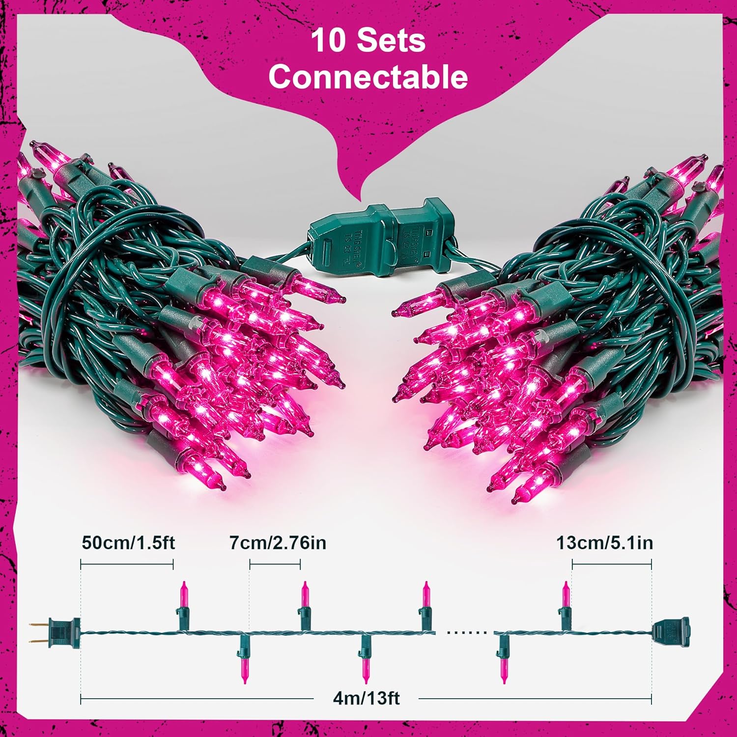 - 🎆Connectable Halloween Lights: Purple string lights can be End-to-End connected. Up to 10 sets,lighting range can be extended to 130ft. With this convenient function,you can do the DIY decoration on any occasions:Halloween ,Eve party, ghost festival,Christmas, music festival, birthday party, graduation party, garden, deck, bedroom.