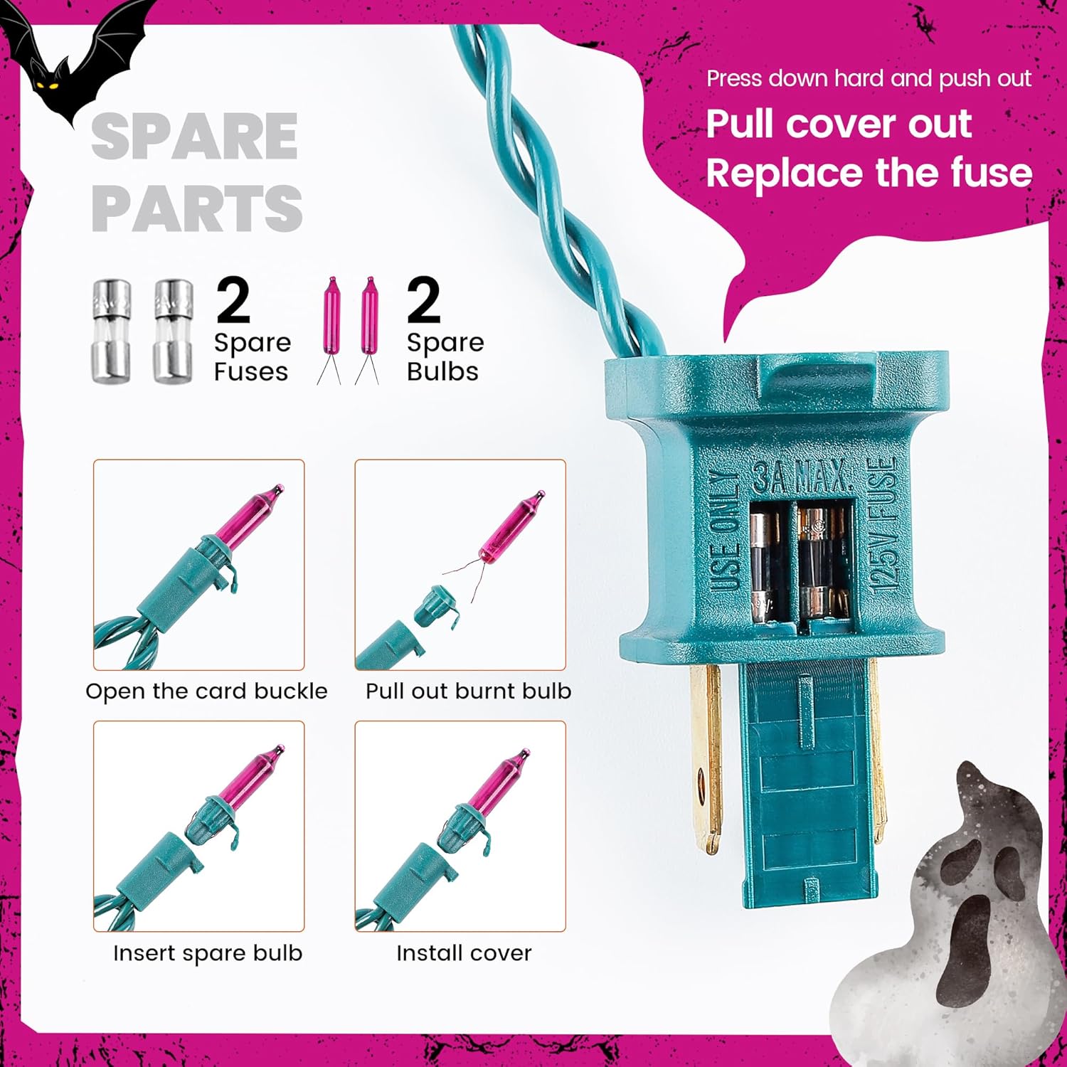 - 🎆Unique Design Halloween Lights: The bulb has a snap-on design and is very easy to replace. When one of our bulbs breaks, it doesn't affect the other bulbs. This is a very special design. You can replace damaged bulbs individually with the spare bulb or fuse provided by us.