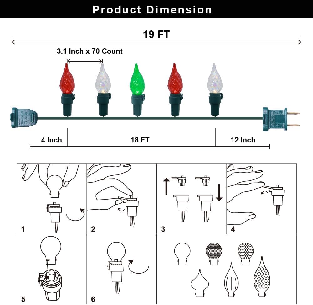 - Bright and Festive Lighting: Illuminate your home and holidays with the bright LED Christmas lights, creating a vibrant and festive ambiance that will fill your space with joy and cheer. The LED bulbs, available in multi-colors, Red, Warm white, and green, emit a brilliant glow that will add a dazzling touch to your decorations.