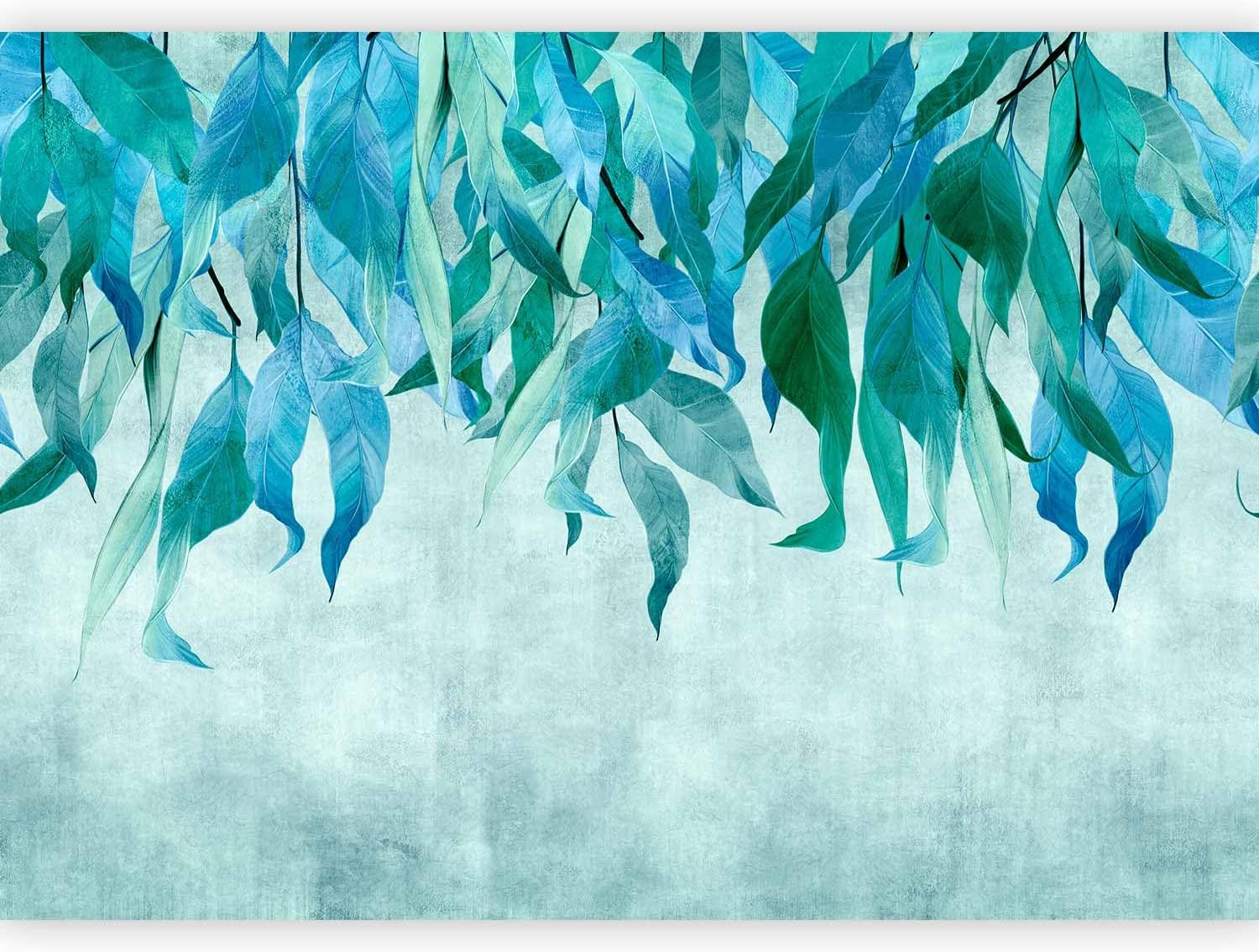 artgeist Premium Wall Mural Hanging Leaves 157x110 in - Non-Woven Wallpaper Fleece Wall Decor Photo Print Picture Image Design Nature Botanical Concrete Green Blue b-C-10146-a-b