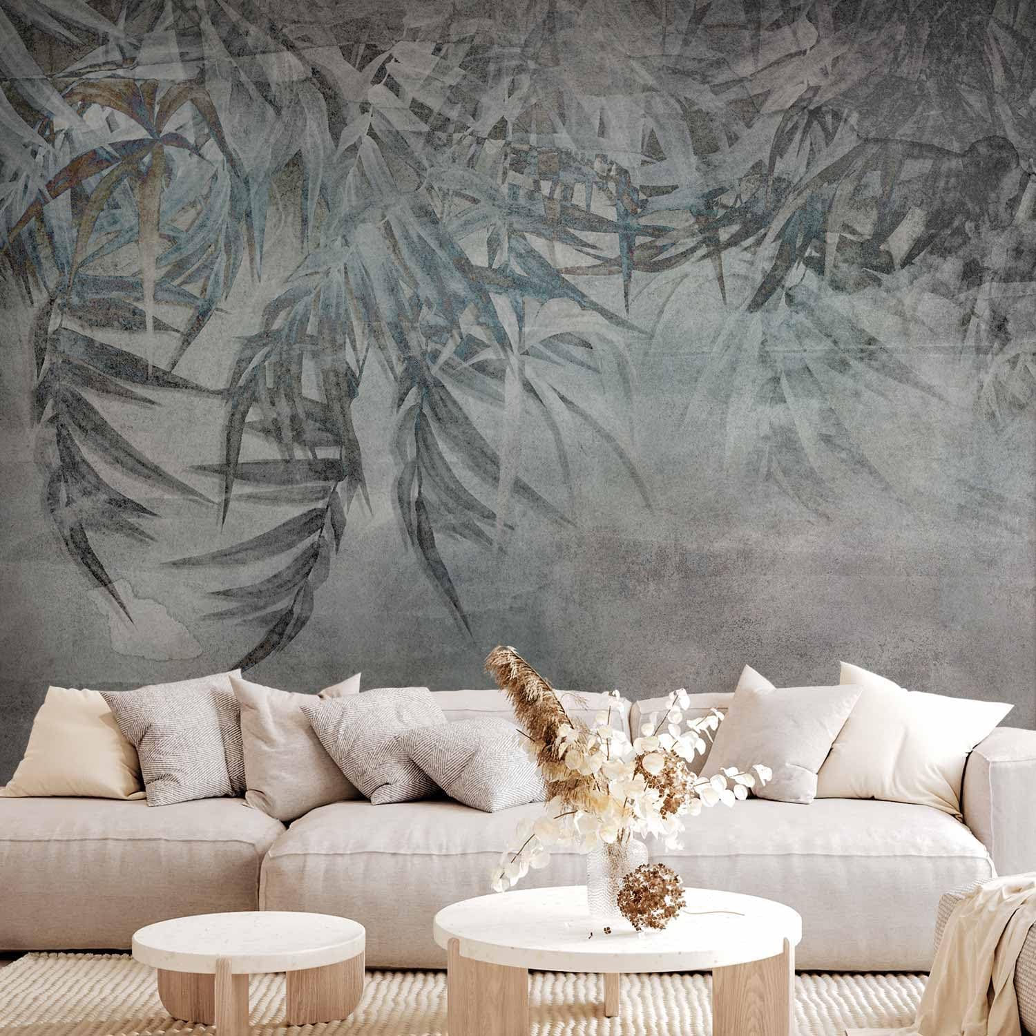 artgeist Premium Wall Mural Leaves 118x83 in - XXL Non-Woven Wallpaper Fleece Wall Decor Photo Print Picture Image Design Palm Leaves Concrete Nature Grey b-C-10103-a-a