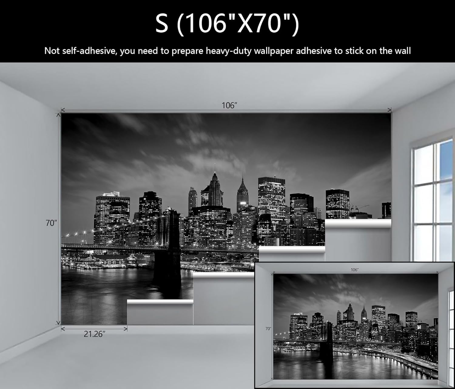 WFBHUA-Brooklyn Bridge Wall Mural Black New York City Landscape Photo Wallpaper for Living Room Bedroom(Not Peel and Stick)