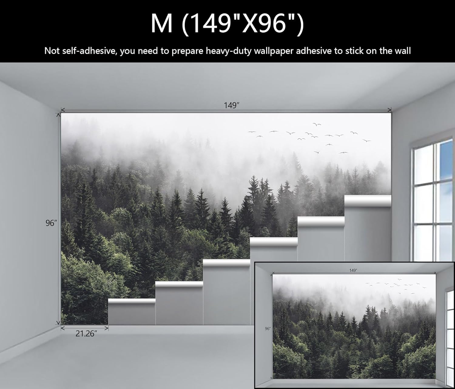 WFBHUA-Foggy Forest Woodland Wallpaper Green Nature Landscapes Wall Murals for Bedroom Living Room(Not Peel and Stick)