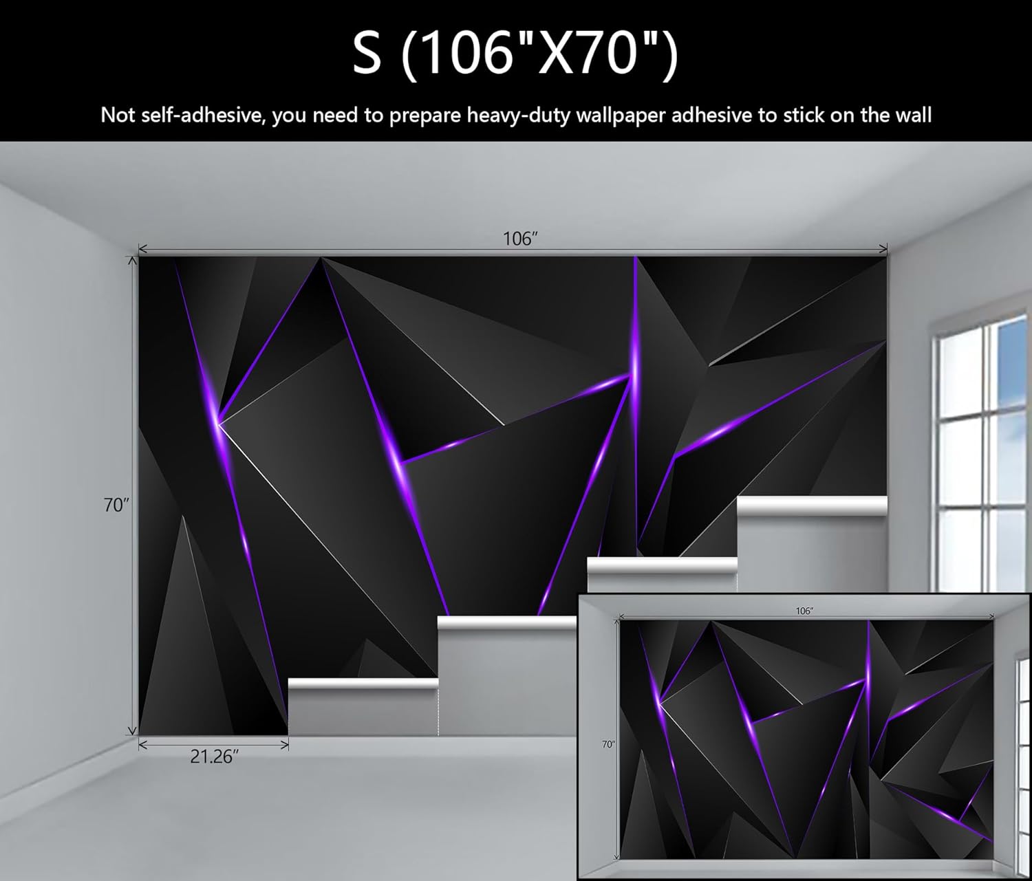WFBHUA-3d Black Geometric Wallpaper Purple Lines Large Background Wall Mural for Bedroom Living Room (No Peel and Stick)