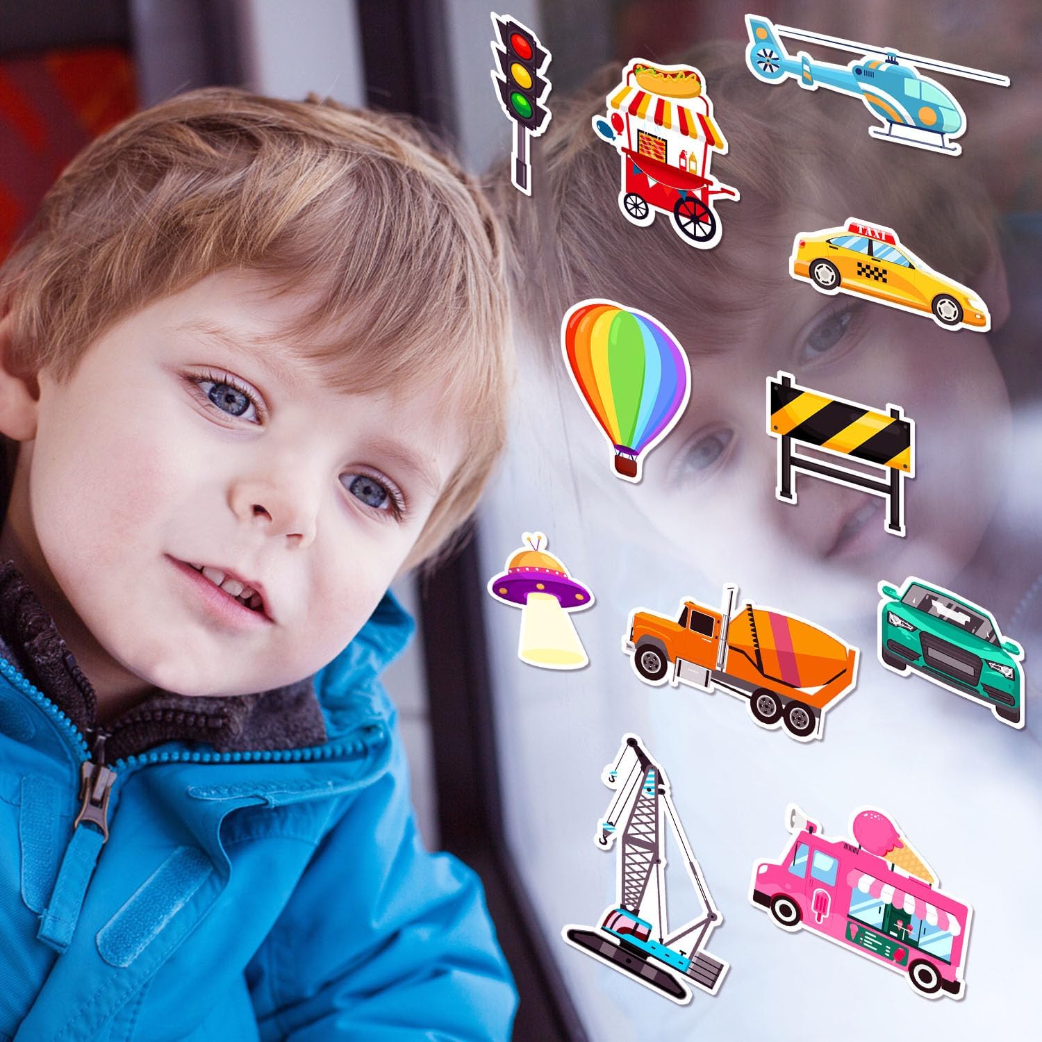 Window Clings Stickers for Kids Window Gel Clings Decals Thick Gel Clings Toddlers and Adults Classroom Home Nursery Airplane Birthday Party Supplies (City Transportation)