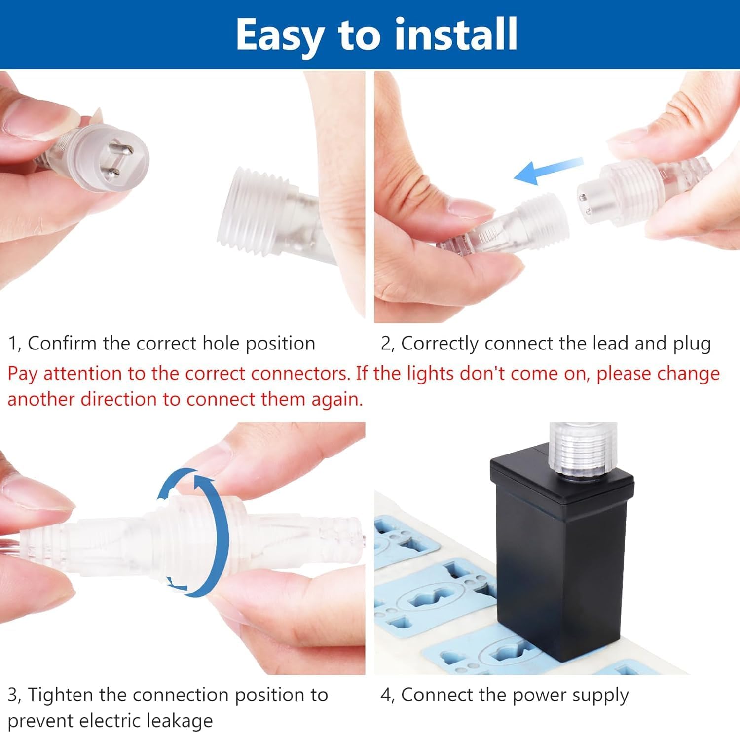 - ăSafe GuaranteeăAuthoritative UL certified, powered by 7V low voltage that is lower than human body safe voltage for safe use, definitely no risk of electric shock. The LED beads are low consumption and energy saving, no overheat after long time using, no risk of fire. Just plug it into the socket to turn the meteor lights on, unplug to turn it off, super easy to operate. The Christmas lights is IP65 waterproof, can withstand rainy and snowy weather, perfect for outdoor use.