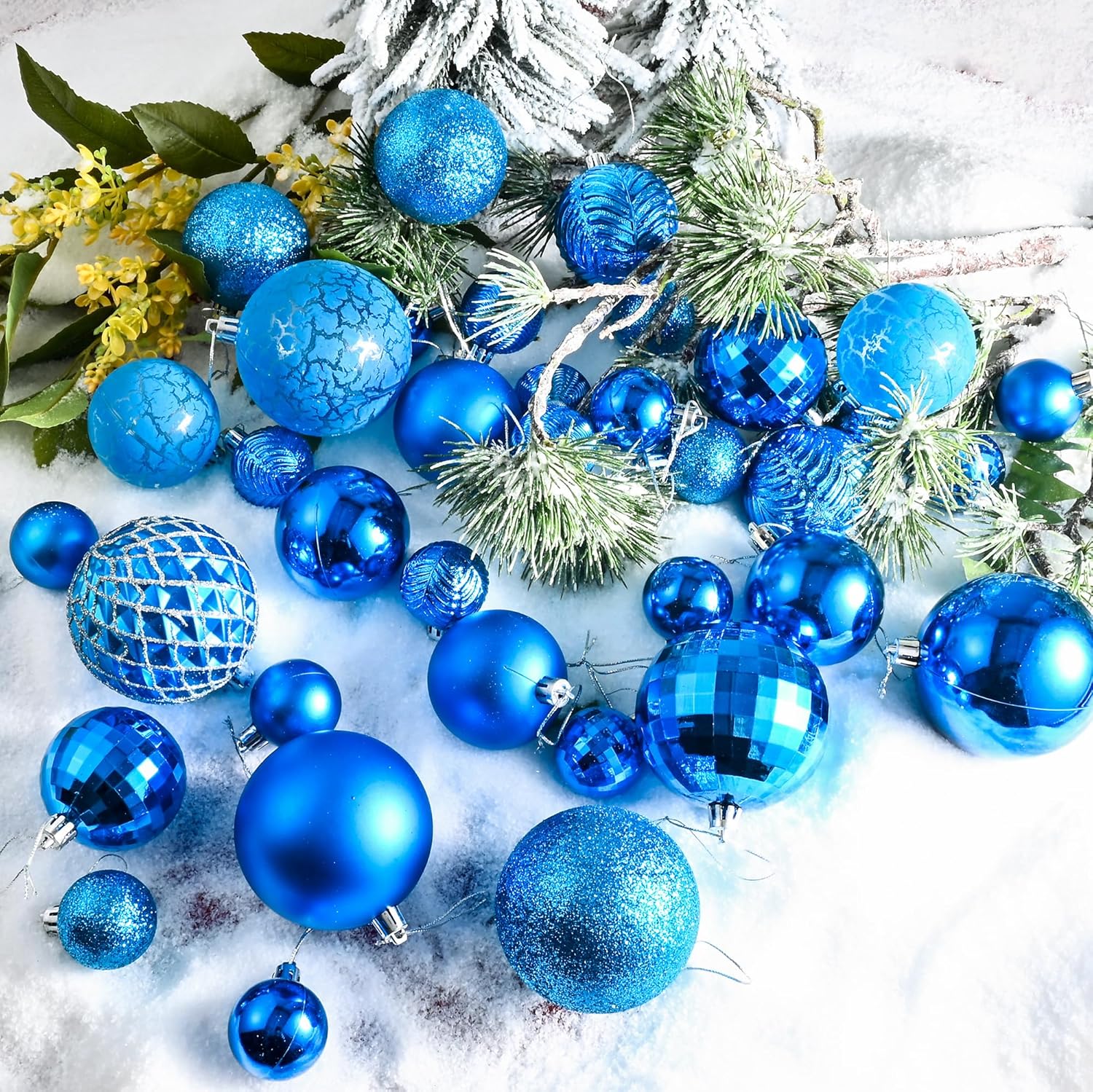 - Diverse Decorations - Our Christmas balls come in various finishes, including matte, crackle, glitter, disco, shimmering, and patterned designs. Accented with classic textures and done with a smooth, sophisticated finish, these dazzling Christmas ornaments will add shine and sparkle to your christams tree decoration. Fill up your Christmas tree, wreath, or centerpiece with these beautiful ornaments.