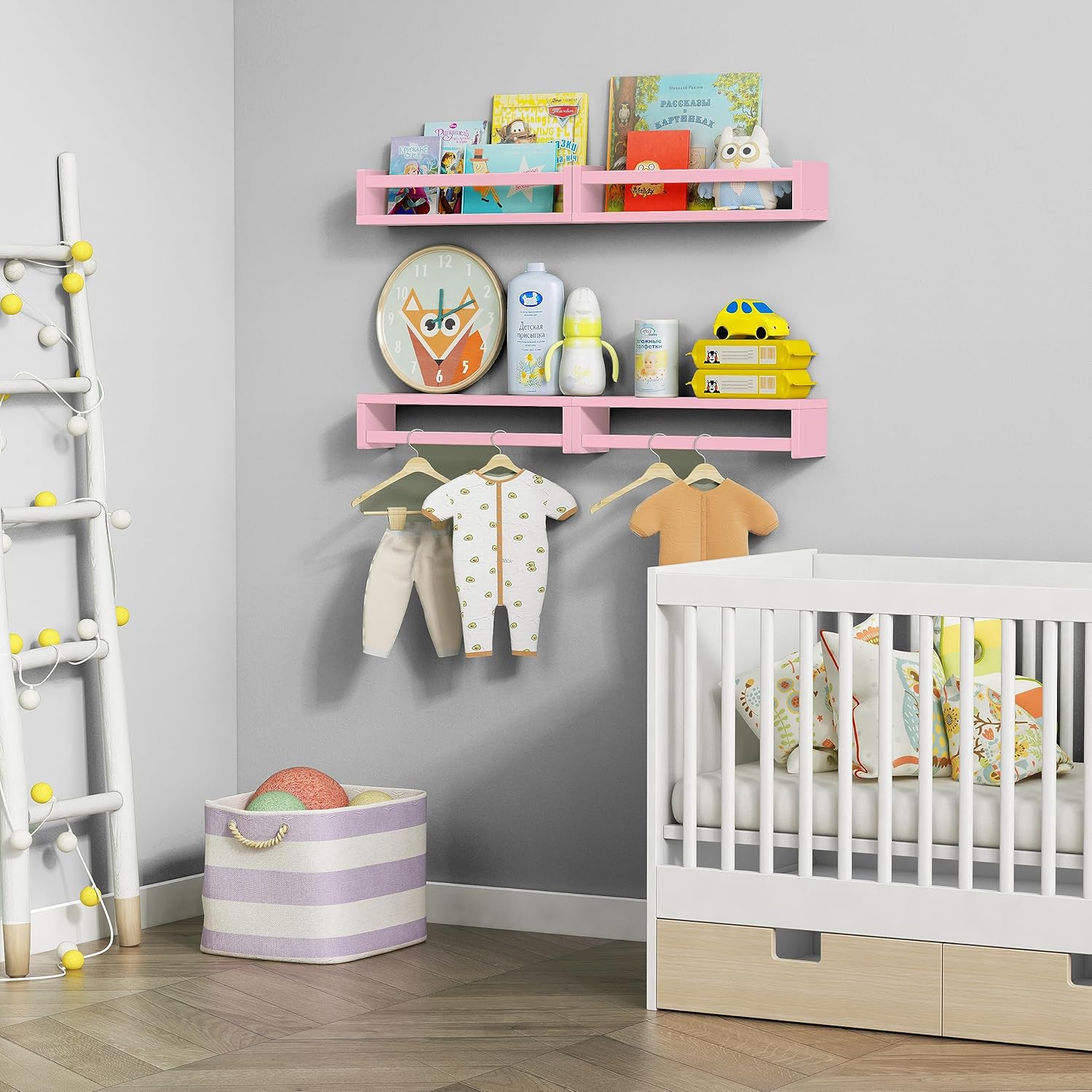 Forbena Pink Floating Shelves for Wall, Aesthetic Wall Bookshelf for Girls Room Decor, Wood Nursery Bookshelves for Toddler Kids Bedroom Book and Toy Storage Organizer (Set of 4, Pink)