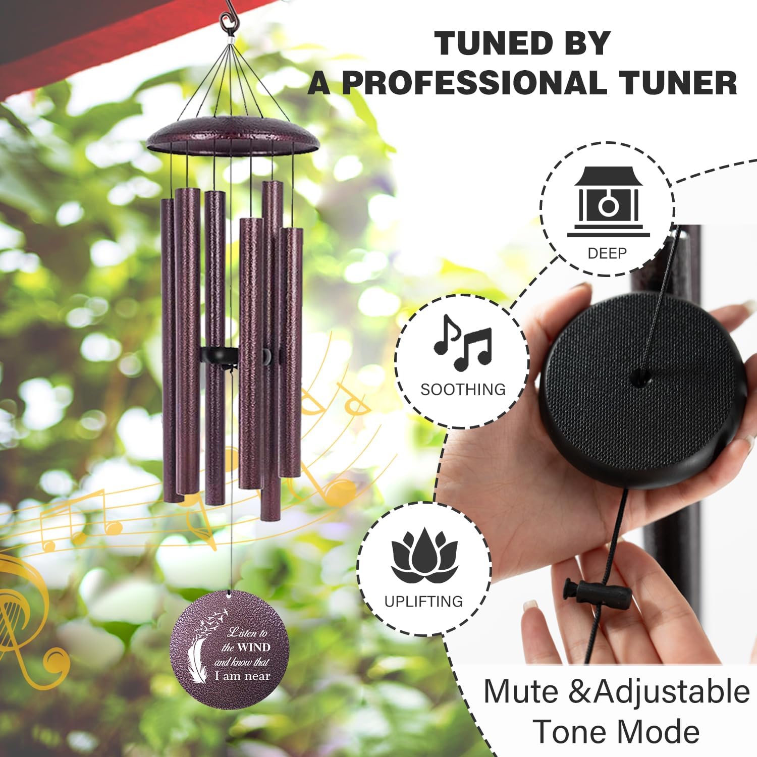 ASTARIN 36" Large Deep Tone Personalized Sympathy Wind Chimes, Memorial Wind Chime for Loss of Mother Father Loved One, Angel's Feather Bereavement Gifts Decor Outdoor Patio Garden(Produced in USA)