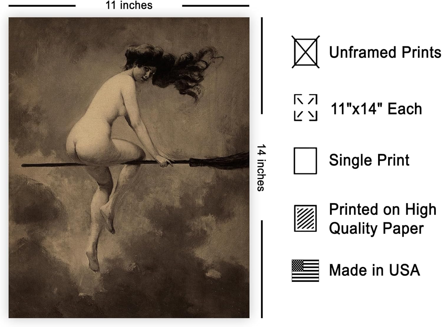Poster Master Vintage Departure for the Sabbath Poster - Retro Naked Witch Print - Halloween Art - Gift for Men & Women - Gothic Wall Decor for Living Room, Bedroom or Dorm - 11x14 UNFRAMED Wall Art