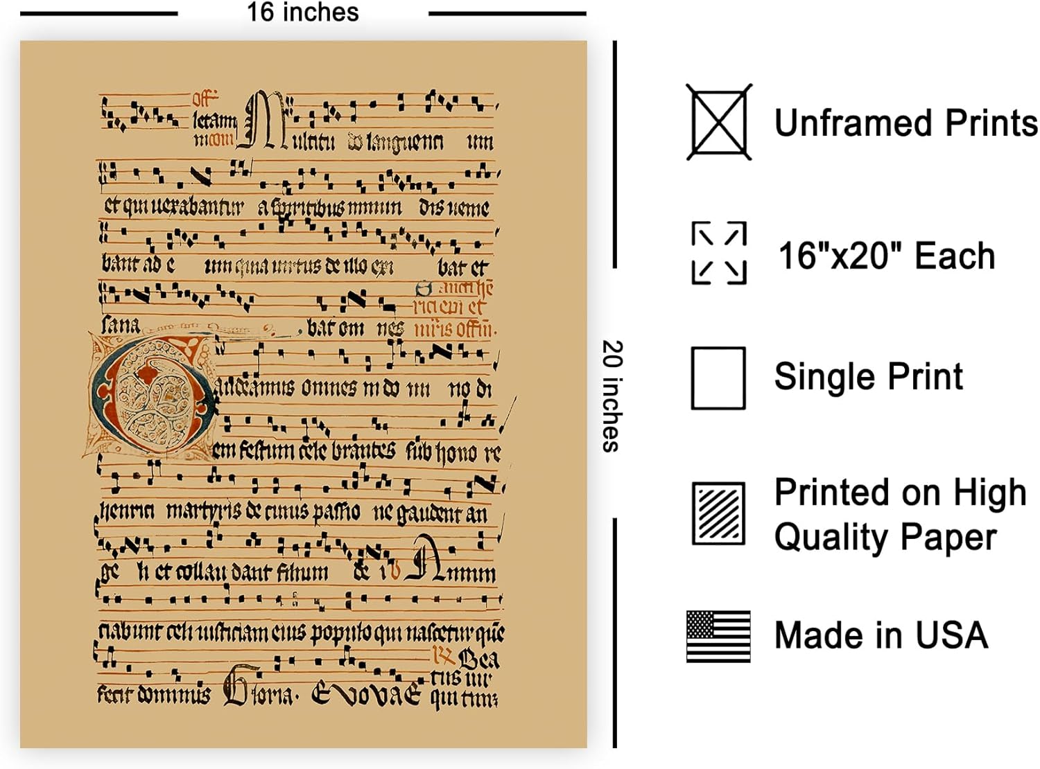 Poster Master Vintage Graduale Aboense Poster - Retro Gregorian Chant Manuscript Print - Hymnal Art - Gift for Men & Women - Great Wall Decor for Dorm, Living Room or Bedroom - 16x20 UNFRAMED Wall Art