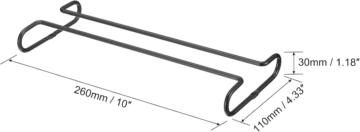 - [Style and Size] This wine glass rack is a single-row metal wine holder; Size: 260x110x30mm/10"x4.33"x1.18"(LxWxH); Material: Stainless Steel; Opening Diameter: 5mm; Color: Black; Products Include: 4pcs x Under Cabinet Wine Glass Holder
