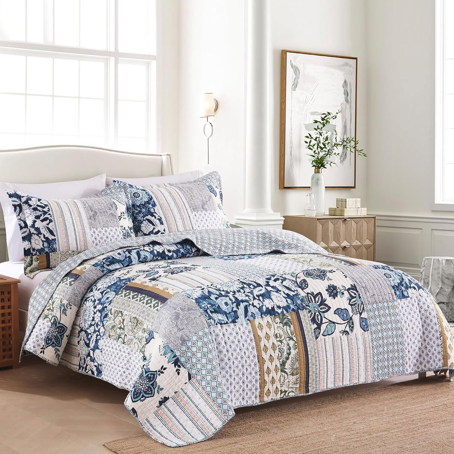 - PREMIUM MATERIAL: The king size quilt set is made of superior 100% cotton material, which is skin-friendly, breathable and safe for using. The high-quality nature material keeps you comfortable and sleep well all night. The lightweight bedspread is designed for ALL-SEASON using; Great to used as the blanket in summer and the stylish bedding layering in winter; Perfect as a home decoration accessory to create a lively atmosphere for your room.