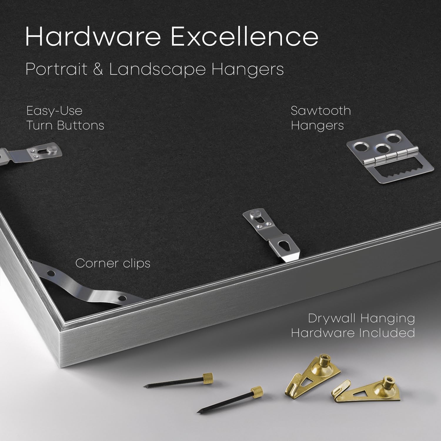 Homeforia 20x28 Picture Frame Silver, High End Metal 20 x 28 Poster Frame with Mat 14 x 22 for Photo, 20x28 Silver Frames Matted to 14x22 Print, 28x20 Hanging Frame, Tempered Glass, Wall Kit, Set of 1