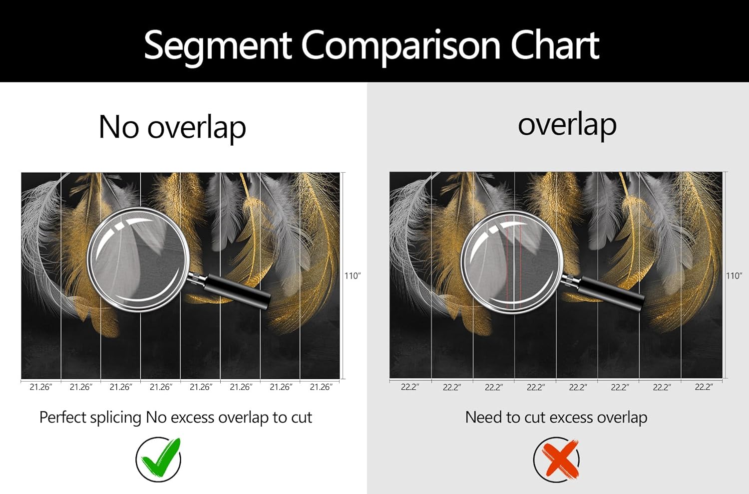 - Mural Size: The total size of this mural wallpaper is 170" x 110" / 432CM x 280CM (W x H), cut into 8 pieces, each measuring 21.26" x 110", for easy installation.