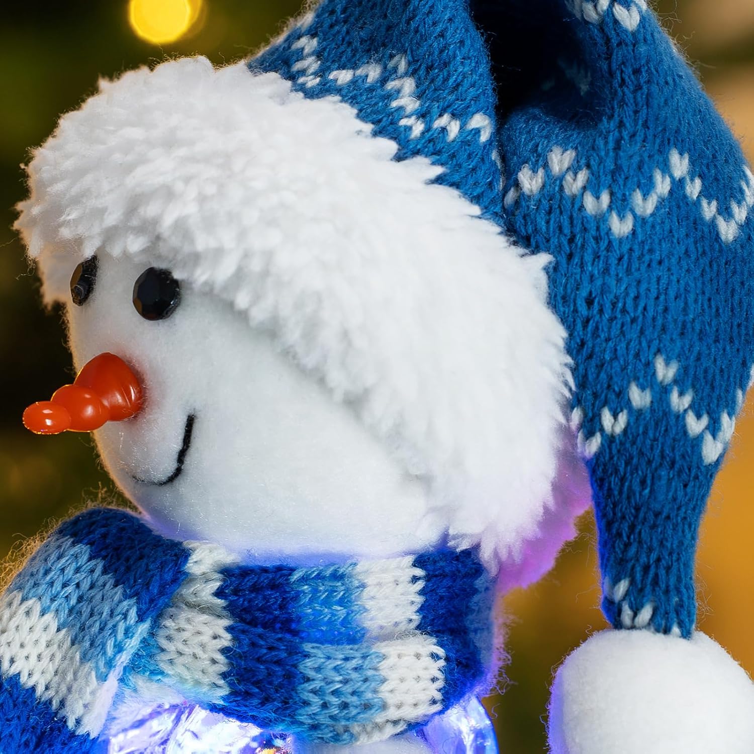 - 🎄【 light up snowman 】Snow Globe is featuring an adorable snowman wearing a cozy wool blue hat and blue-white-striped scarf with fabric face and hands, and a body in the shape of an ice pillar, this Christmas musical snow globes captures the magic of the season. Crafted with utmost attention to detail and quality, our Christmas snow globe lantern has been constructed with care to ensure that there is no leaking or fire danger, making it safe for use around children and pets.