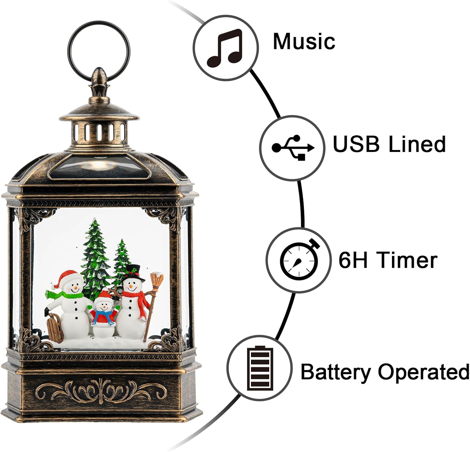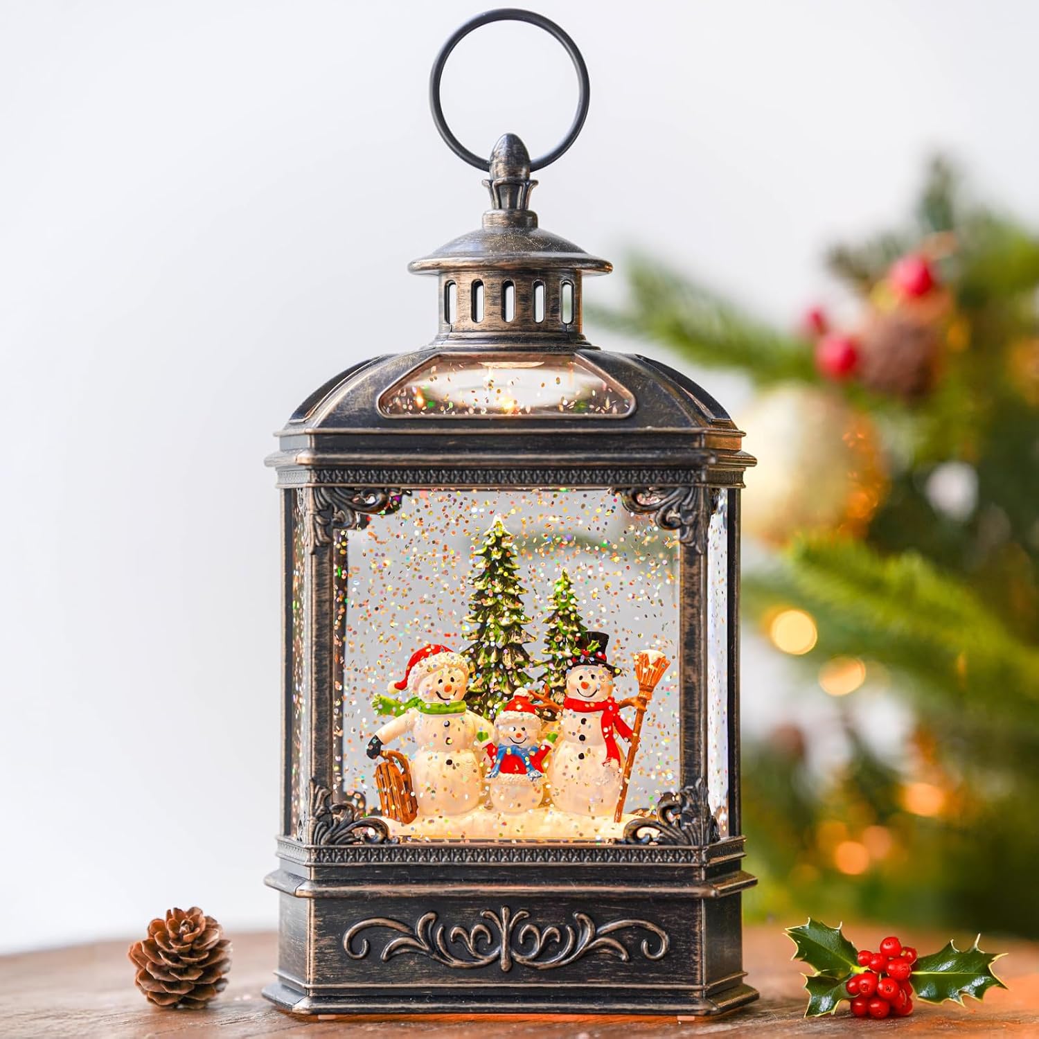 - 🎅🎄【Snow Globe Lantern】The traditions of Christmas with The Snowman Family then you'll love this Lighted Water Lantern. When turned on a warm LED shines on the figurine and swirling glitter to gives our Christmas globe a whimsical look for the Christmas Holiday season.