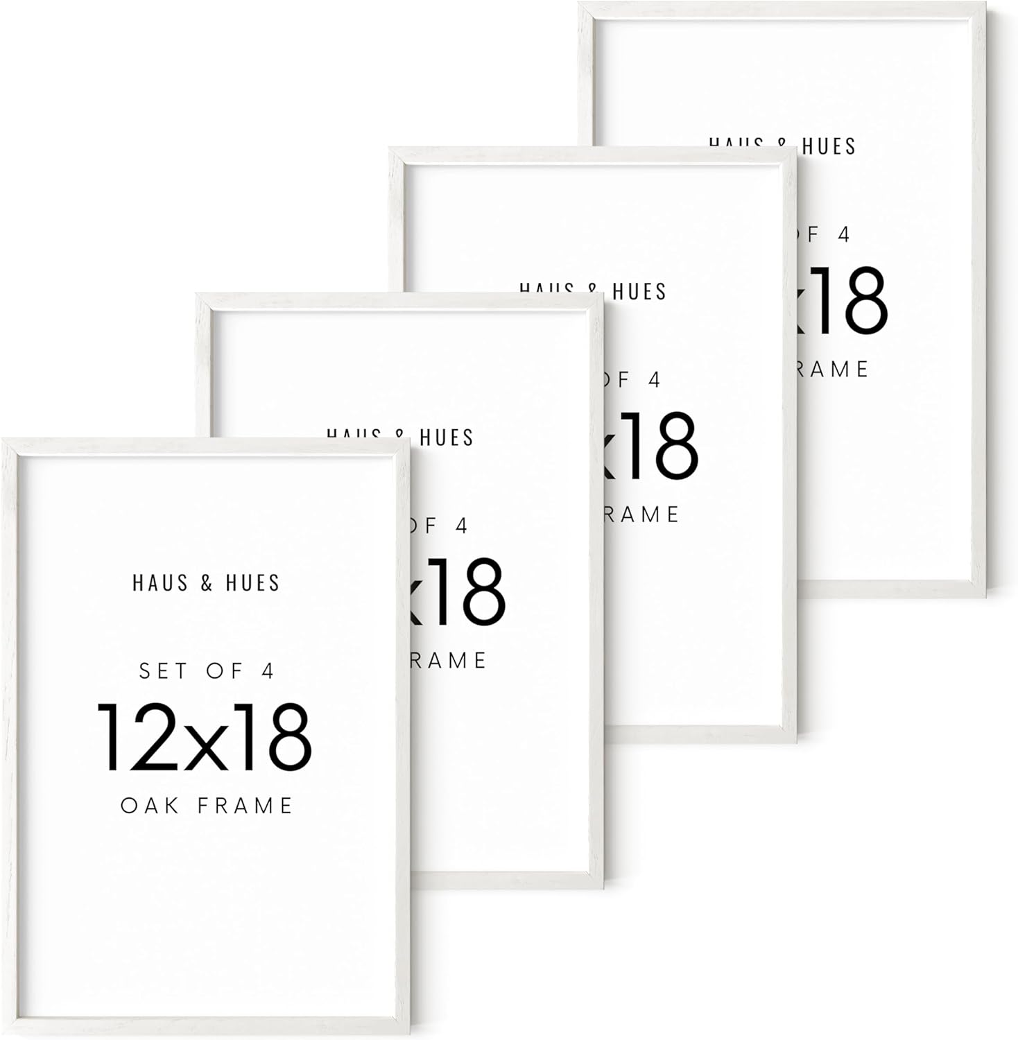 HAUS AND HUES 12x18 Picture Frames For Wall - Set Of 4 Poster Frames 12x18, Picture Frames 12x18, 12x18 Frames, Frames 12 X 18, Gallery Wall Frame Set, 12x18 Poster Frame (White Frame)
