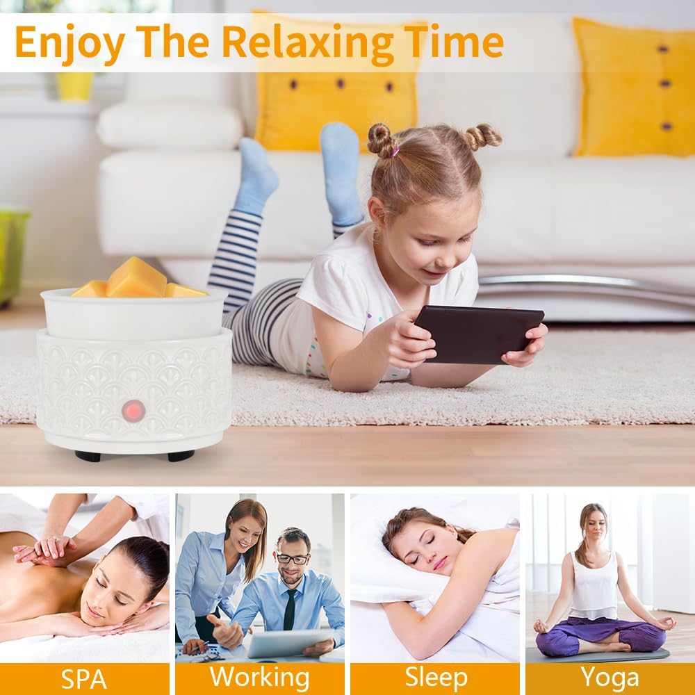 - 【3-in-1 Fragrance Warmer】 You can add your favorite candle to the warmer or wax melts to the dish; Our wax melter is easy to operate. Plug in power, turn on the switch, the fragrance spreads all around the room soon, creating a pleasant and relaxing atmosphere.