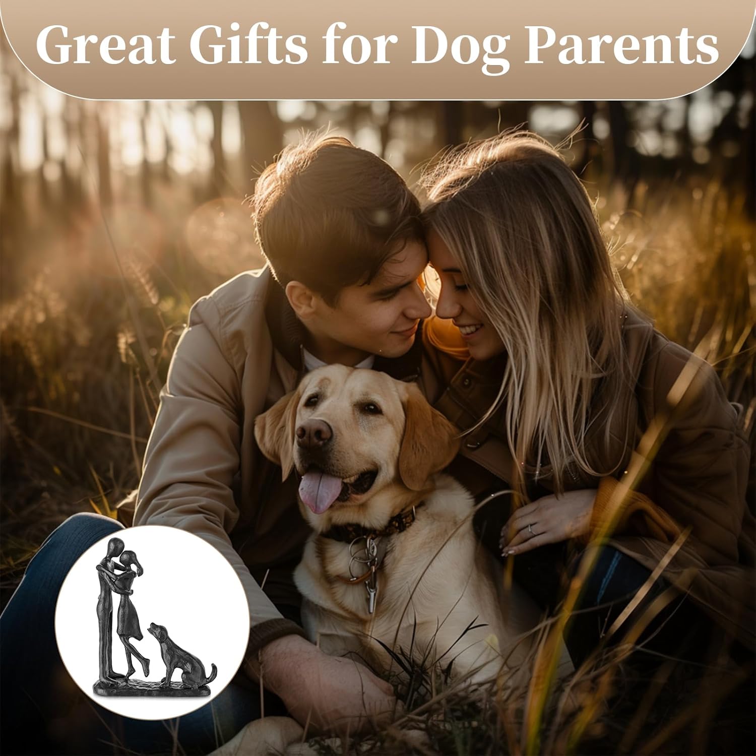 - LOVELY COUPLE AND DOG SCULPTURES - A joyful family of three. This exquisite iron couple statue captures a beautiful moment of love, with one couple sharing a heartfelt kiss, while their loyal dog sits beside them, witnessing the happy scene. It symbolizes a harmonious and joyful family of three, adding emotional depth to your decor.