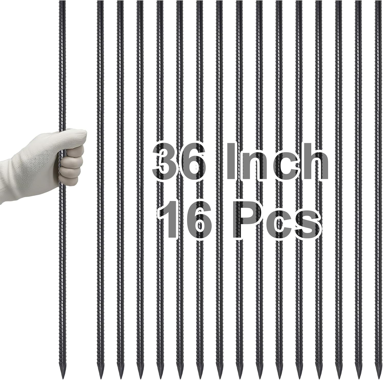 - Straight Rebar Stakes 36 Inches - Sold in bundles of 16 pcs. Each concrete form stake is 36"(3ft) long and 3/8''(10mm) diameter, perfect for landscape timbers, plant support, garden edging border