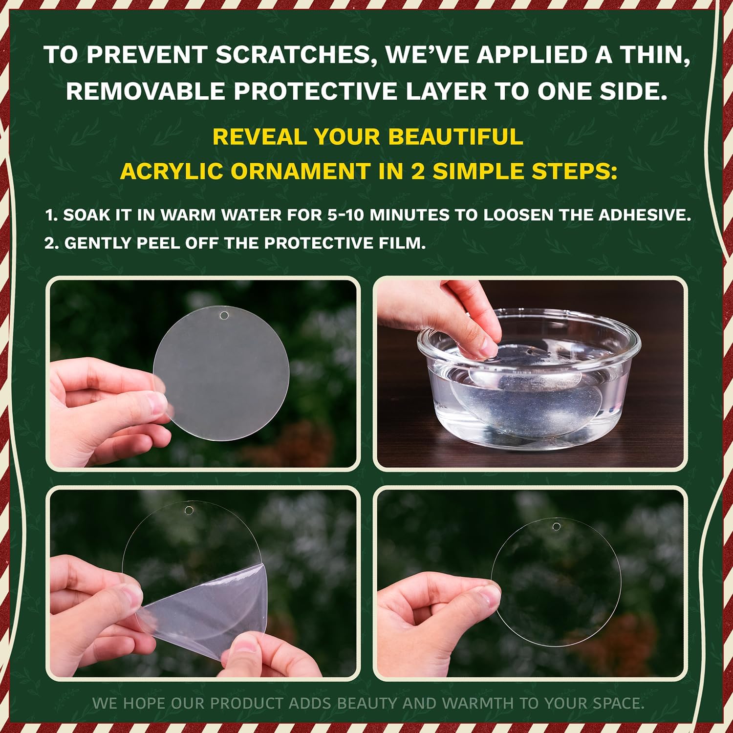 - ACRYLIC MATERIAL: Made from acrylic with a transparent protective film on the front to prevent scratches. The design is printed on the back, and to fully appreciate the ornament's beauty, remove the protective film to reveal the clear acrylic finish