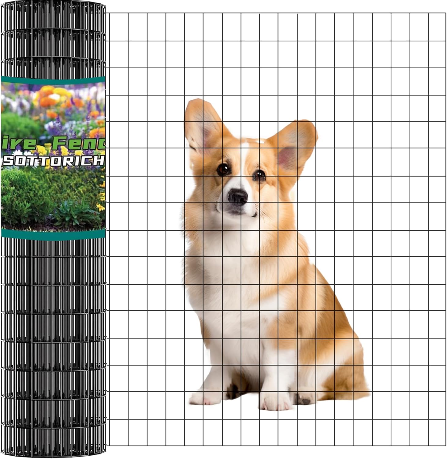 Wire Fence 24in x 50ft, 2X 3 16GA, Black PVC Coated Garden Fence for Yard Garden Border Fencing Roll Vinyl Coating Metal Wire Mesh for Yard Vegetable Plant Protection Poultry Netting