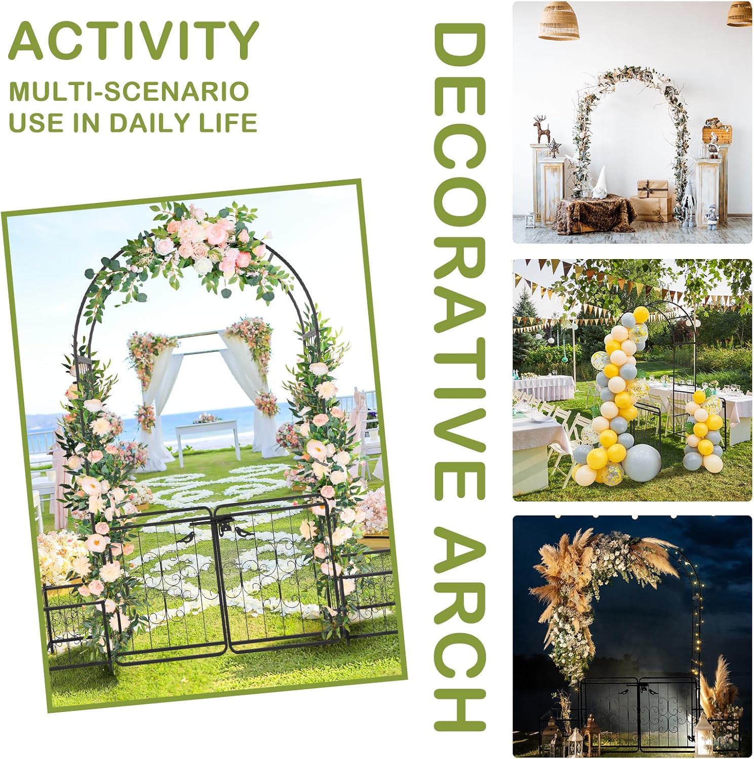 - 【GREAT FOR EVENTS】This walkway trellis is also great for weddings, anniversaries, birthday party, Christmas or other important occasions decoration. Decorate it with balloons, leaves, party banners, tulle, LED fairy lights or anything else you want, makes your events classic and fabulous