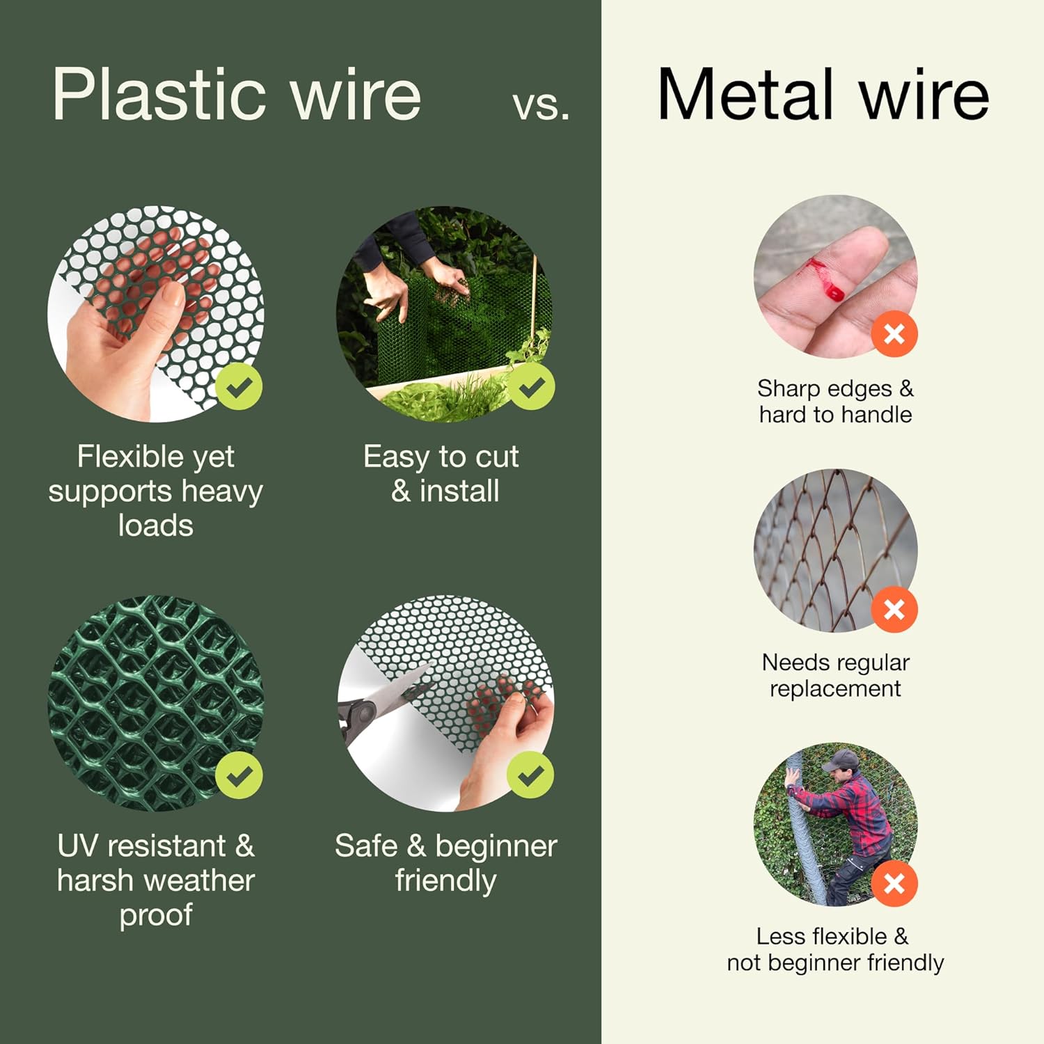 - Functional And Stylish: The sleek design of this plastic mesh blends seamlessly into any outdoor setting while meeting all your garden fence animal barrier needs. Whether you need a dog fence barrier or poultry netting, this mesh handles it all with style